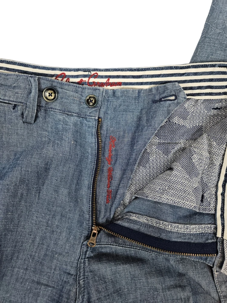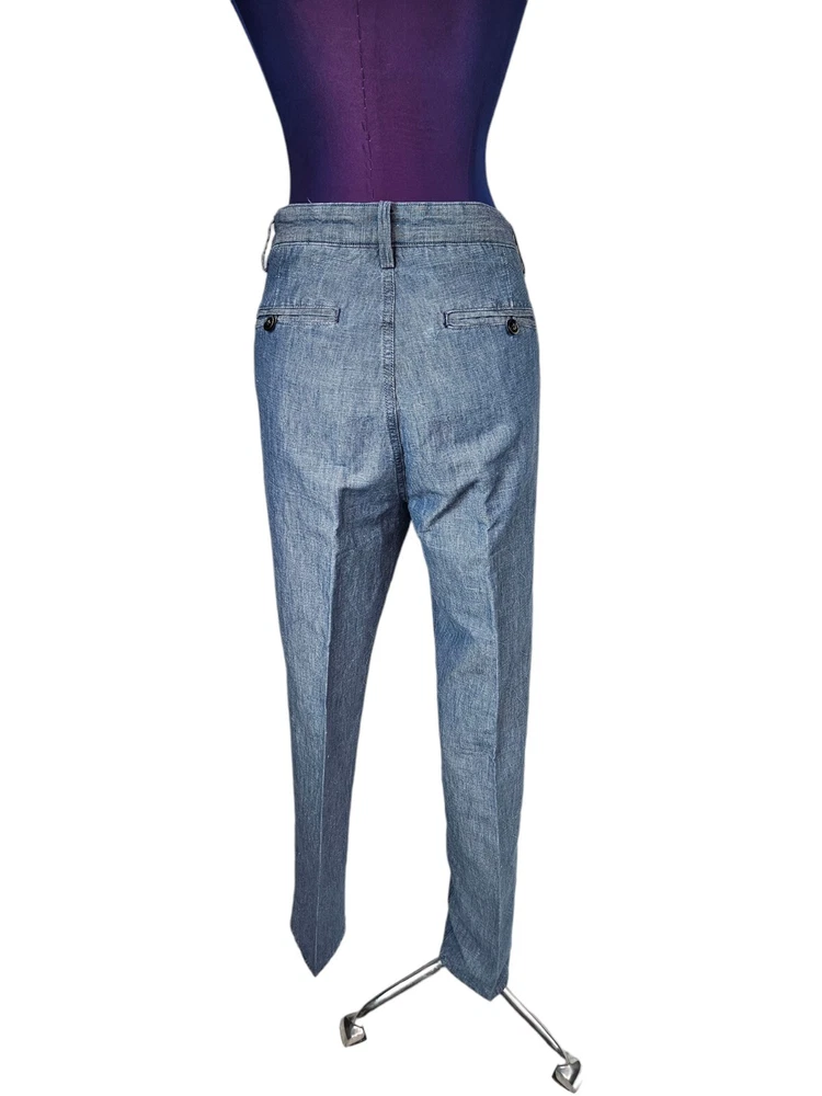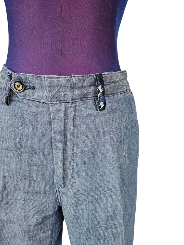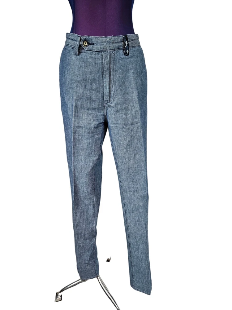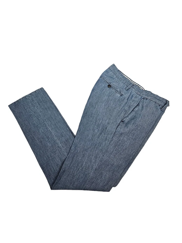 Robert Graham Tailored Kipling Blue Chambray Straight Leg Pants Size 32 Men V39 In excellent condition Robert Graham Tailored Kipling Blue Chambray Straight Leg Pants Size 32 Men's. Features Robert Graham tailored kipling casual pants in blue chambray, extended tab button closure with zipper, 2 front slash pockets, 2 back welt pockets with button closure, straight leg, lightweight, preppy casual style. Measurements laying flat waist 16" front rise 10.5" hips 20" inseam 33" leg opening 7" Fabric cotton, linen This is a pre-owned item that may show signs of wear. In excellent condition, no flaws.