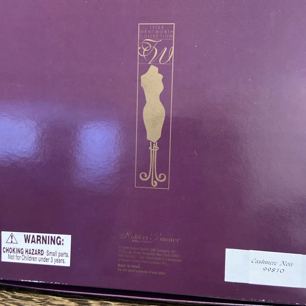 This Robert Tonner 16" Cashmere Noir Outfit is part of the Tyler Wentworth Collection from 1999. It includes a black coat/jacket, scarf, outfit, jewelry, shoes, sunglasses, and hosiery, all designed for a fashion doll. This limited edition outfit is vintage and features a stylish outerwear clothing style suitable for all occasions. Made of cloth material, it is compatible with 16" dolls and has a fashion & beauty theme.