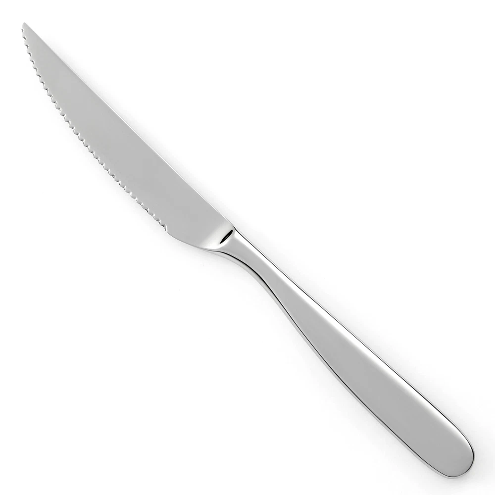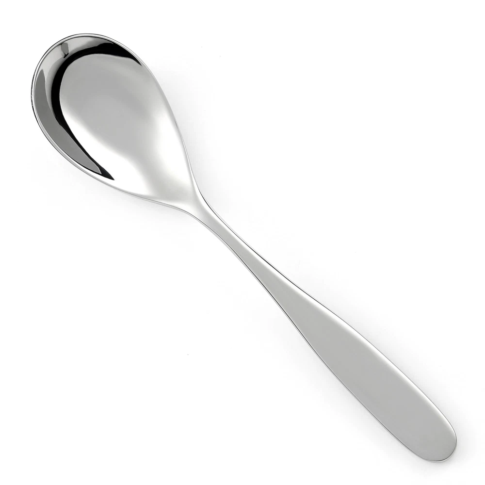 choice flatware Robert Welch Stanton Mirror Pieces Dinner Fork 7 7/8" Length 7 7/8" Dinner Knife 9 3/8" Length 9 3/8" Handle Type Solid Handle Place/Oval Soup Spoon 7 3/4" Length 7 3/4" Salad Fork 7 1/8" Length 7 1/8" Steak Knife 9 3/8" Solid Handle Length 9 3/8" Handle Type Solid Handle Blade Edge Serrated Blade Teaspoon 6 3/8" Length 6 3/8" Condition Statement Great condition with only light, minor scratches from common use. Marks STANTON Design ©Robert Welch 18/10 VIETNAM