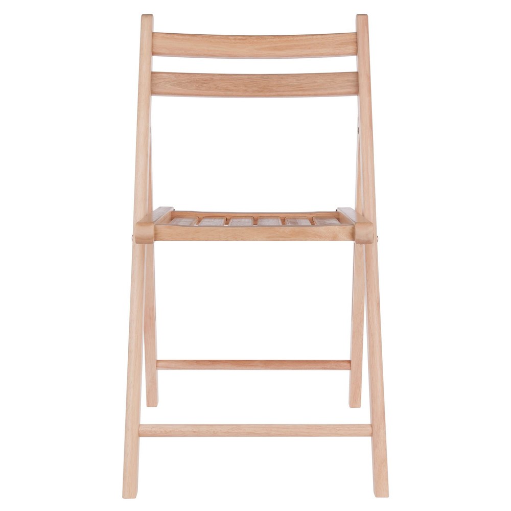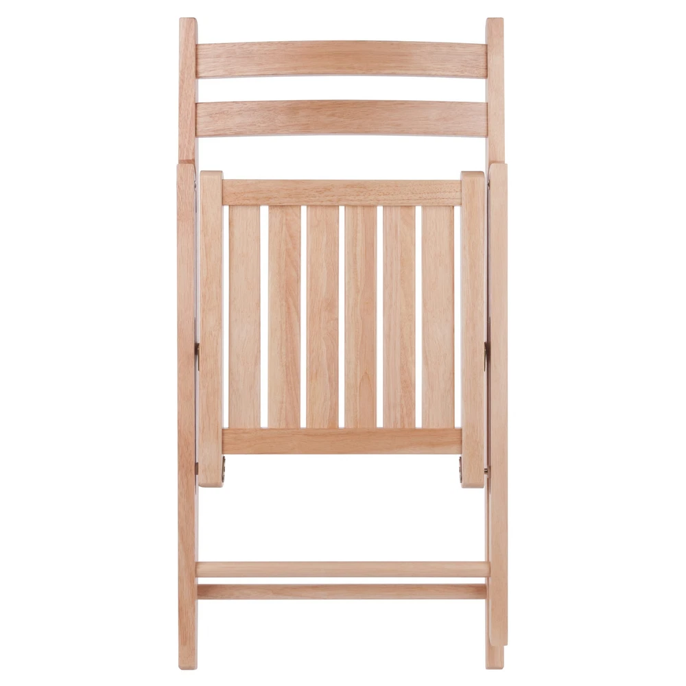 The Robin 4-PC set of solid wood folding chairs in natural finish has a traditional style with the contoured back and slatted seat for comfortable seating. The chairs are easy to store when they are folded up measuring 17.6"W x 2.8"D x 35.1"H. The seat width is 15.1" with a height of 17.4" from the floor and the seat back measures 17."W x 14.9"H. Mase of solid wood in a natural finish. No assembly required. Compact and Foldable: Lightweight, portable chairs fold down to just 2.77” thick, making them ideal for easy storage and transport. Comfortable Design: Slatted seats and double-bar backs offer comfort and support, with a seat height of 17.4” from the ground. Versatile Use: Perfect for dining, card games, or additional seating during gatherings, both indoors and outdoors. Space-Saving Solution: Fold and stack neatly when not in use, ideal for small spaces or on-the-go seating needs. Durable and Reliable: Solid wood construction with a weight capacity of 170 lbs per chair ensures long-lasting performance.