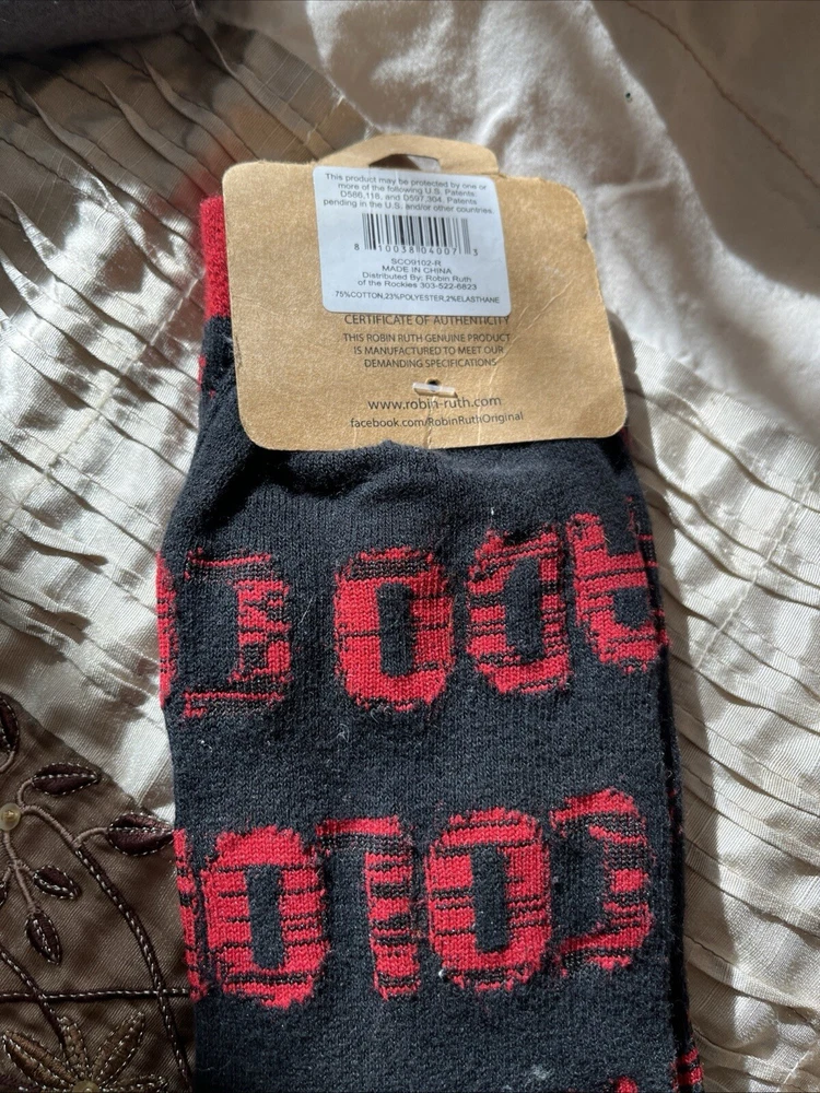 Black socks with COLORADO letters in red by Ruth Robin-new