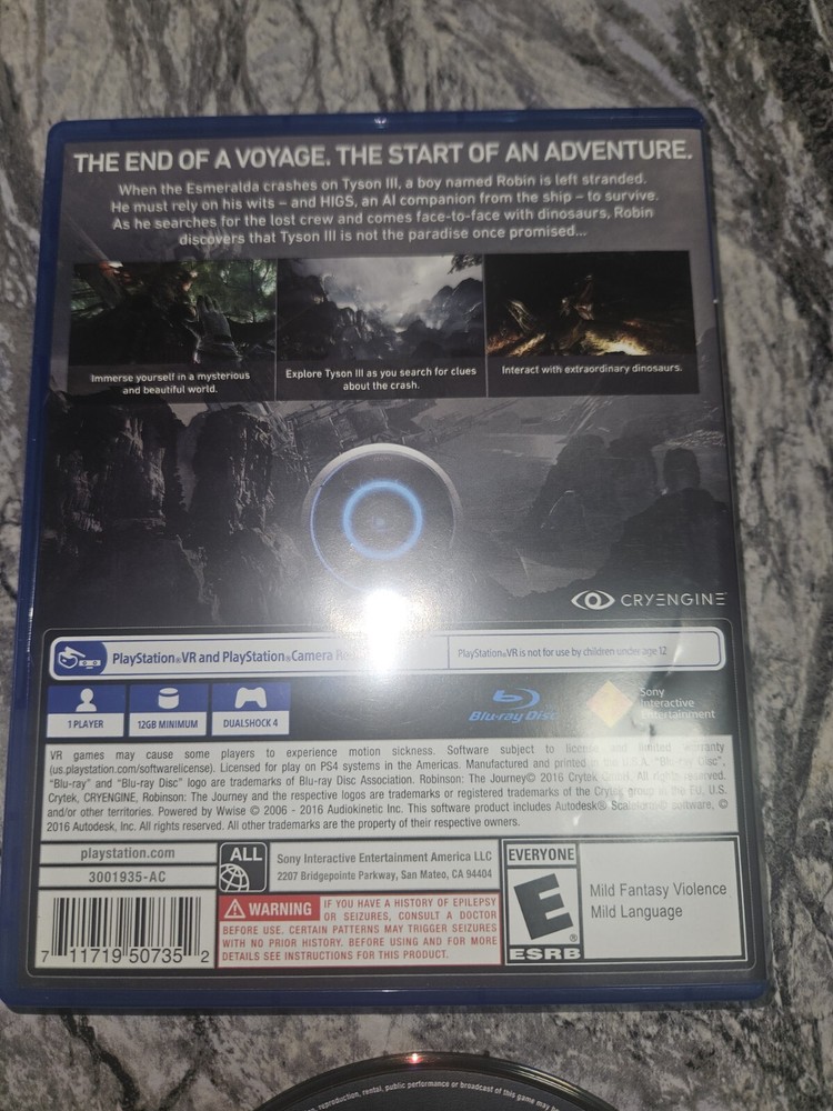 Game Name: Robinson The Journey VR Platform: Sony PlayStation 4 UPC: 711719507352 Publisher: Crytek gtin13: 711719507352