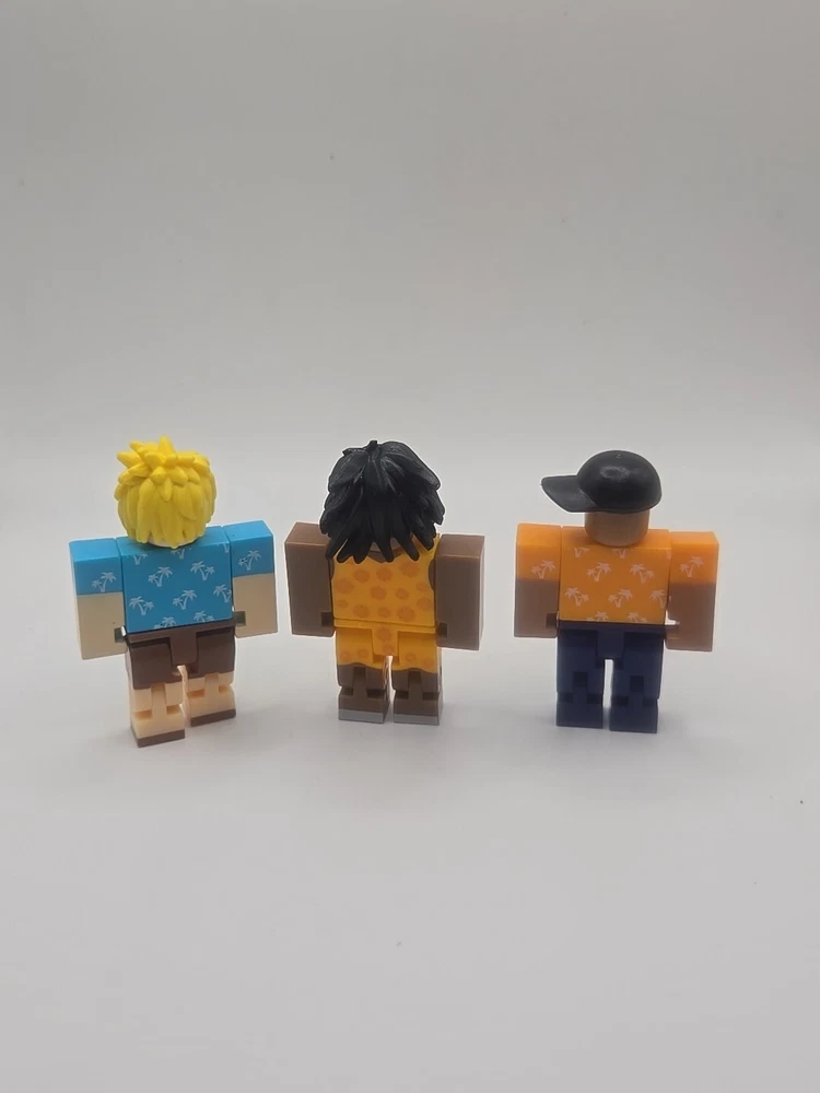 Enhance your Roblox collection with this lot of three tropical action figures. Each figure stands 2.75 inches tall and is made of durable plastic material. These figures are perfect for any Roblox enthusiast and are sure to add some fun to your gameplay. The set includes figures from the Roblox franchise and is a great addition to any collection. Get ready to embark on a tropical adventure with these Roblox action figures!