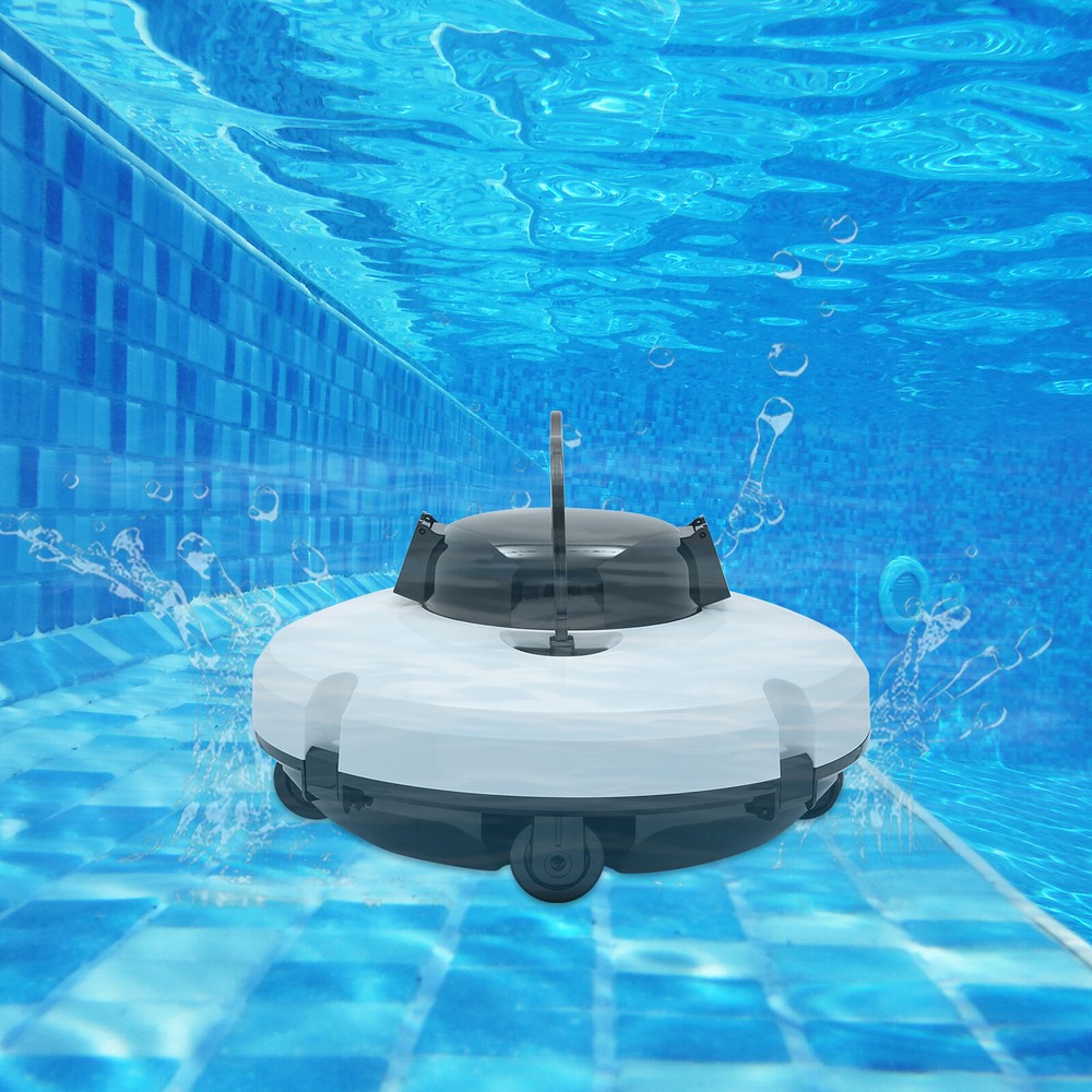 Specification Material: ABS Color: White Shape: Round Style: Modern Power Source: Battery Powered Mount Type: Freestanding Assembly Required: No Protection Level: IPX8 Plug Type: US Standard Battery: 5200mAh 18650 Li-ion Battery Input: 100-240V/50-60HZ, 0.8A Output: 12.6V, 2A Duration: 2H Charged Time: 3.5-4H Filter Accuracy: 180μm Max. Climbing Angle: 15° Applicable Area: <100m²/1076.4ft² Suction Port Width: 8cm/3.15in Crawling Speed: 17m/55.77ft /Min Product Size(D*H): 33*23cm/12.99*9.06in Package Size: 35.5*34*18cm/13.98*13.39*7.09in Gross Weight: 3.99kg/8.80 lbs Net Weight: 3.5kg/7.72lbs Package Included 1* Cordless Pool Cleaner 1* Power Adapter 1* Retrieving Hook 1* English User Manual Robotic Cordless Swimming Pool Vacuum Cleaner Swimming Pool Cleaning Machine Welcome~ Description Are you concerned about the cleanliness of your pool? Take a moment to consider our cordless pool cleaner . It could be the ideal solution for you. This innovative device utilizes a cordless design , eliminating the constraints of traditional wired cleaners and providing more flexibility and convenience during operation. The powerful built-in motor and fine filter create strong suction, effectively removing dust and other debris from the pool bottom, ensuring that your pool water remains clean and hygienic. Key Features Made to Last: It is made of high-quality ABS and has an IPX8 protection level, is not easily deformed and damaged, and can maintain good performance after long use underwater. Advanced Technology: When encountering the wall, the pool cleaner will automatically reverse. After cleaning is completed, or if the battery is low, it will automatically stop along the nearest wall, bringing you much convenience. Auto&Efficient Cleaning: Equipped with high-efficiency dual motor drive motors and double wide suction cups (suction port width: 3.15in) as well as a 180μm fine filter, small blade design, dual exits, and two bottom scrapers, it provides powerful suction with a crawling speed of up to 55.77ft/min, which can automatically and efficiently capture and filter more dirt and debris with ease. Cordless Operation: The battery-powered design enables you to use this cleaner to clean the bottom of the pool without messy tangles, ensuring mobility flexibility while also eliminating the risk of accidental electric shock on wired devices, saving labor costs, and freeing your time for other things. Excellent Performance: Adopting a 5200 mAh large-capacity rechargeable lithium battery and low-consumption motors, this pool cleaner can work up to 120 minutes after 3.5-4 hours charging, which is enough to clean inground/above-ground pools up to 1076.4ft². Easy to Operate: It supports a one-button start design, simplifying the operation process and making it easier and faster to use. Compact Design: It's compact(12.99*9.06 inches) and lightweight(7.72 lbs), so you can easily move this cleaner with one hand and store it in a small corner. Easy to Retrieve&Clean: The retrieval hook ensures easy fetch of the cleaner and the fine filter allows you to rinse it with a hose and water. Generous Appearance: The simple white appearance with a round outline presents a modern style that fits most decors, adding an elegant touch to your swimming pool. Ideal Gift: Such a powerful and practical machine is an excellent gift to your friends for various holidays such as Christmas, New Year, and birthdays. Details Practical Handle: The practical handle allows for easy catching and carrying. Cover Buckle: It allows for easy opening of the lid to clean the machine and filter, which is very friendly for women and the elderly. Smooth Edges: The smooth edges without burrs enhance the beauty of the product and better care for your skin when cleaning it. Application It is suitable for above-ground and in-ground pools of a flat bottom(Max. Slop: < 15°), an area less than 1076.4ft 2 , and with various lining (PVC, tiles, vinyl, or gunite) and shapes (round, rectangular, or oval). Specification Material: ABS Color: White Shape: Round Style: Modern Power Source: Battery Powered Mount Type: Freestanding Assembly Required: No Protection Level : IPX8 Plug Type: US Standard Battery: 5200mAh 18650 Li-ion Battery Input: 100-240V/50-60HZ, 0.8A Output: 12.6V, 2A Duration: 2H Charged Time: 3.5-4H Filter Accuracy: 180μm Max. Climbing Angle: 15° Applicable Area: <100m²/ 1076.4ft² Suction Port Width: 8cm/3.15in Crawling Speed: 17m/55.77ft /Min Product Size(D*H): 33*23cm/12.99*9.06in Package Size: 35.5*34*18cm/13.98*13.39*7.09in Gross Weight: 3.99kg/8.80 lbs Net Weight: 3.5kg/7.72lbs Package Included 1* Cordless Pool Cleaner 1* Power Adapter 1* Retrieving Hook 1* English User Manual Notes Please check the style and size before purchasing. Please read the instruction manual completely before installation and use, and pay particular attention to the safety instructions included. When it works, please do not enter the swimming pool. To avoid damaging the product, please do not use it to clean pool stairs. This product cannot climb walls or stairs. Please note that items floating on water cannot be cleaned. After turning on the product and hearing the dripping sound, place the product into the water. When the pool cleaner is not in the water, please remember to turn off the power switch to protect the battery and motor. The product has a waterproof design, usually, water will not enter the charging slot, if water does enter the charging slot, you can use a hair dryer to dry it. Before charging, please leave the device for a few minutes to allow the water to dry. Please charge the battery first after you receive the package for a better experience. Please store the product in a cool place when charging and do not cover the unit as this may damage the internal electrical components. Please allow the slight color difference caused by the shooting light and 1-3cm error due to manual measurement and make sure you do not mind before ordering. Payment 