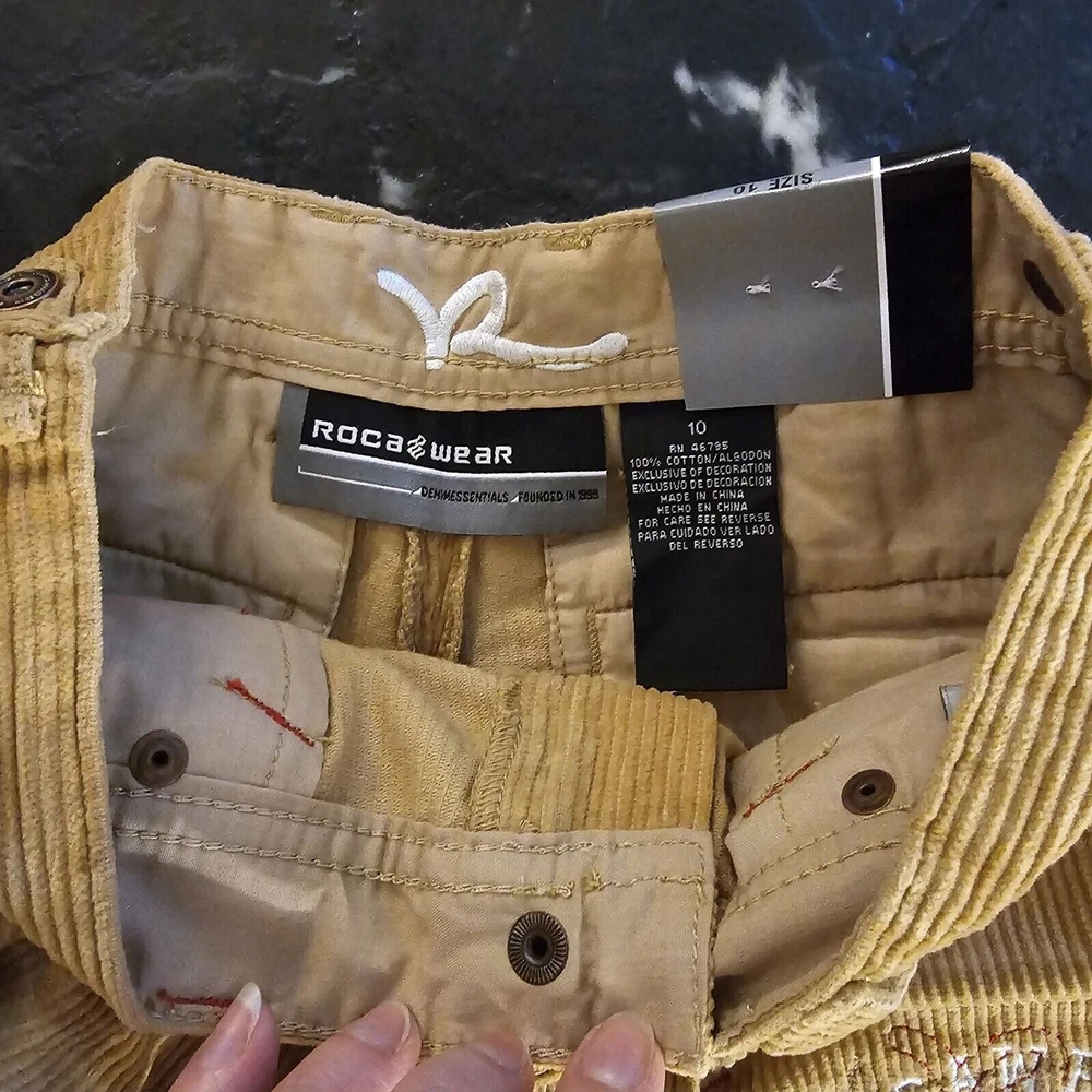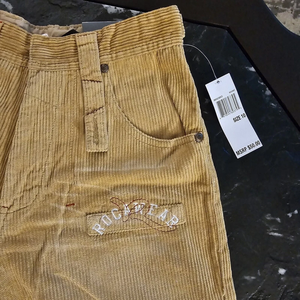 Brand: Rocawear Vintage: Yes Department: Boys Fabric Type: Corduroy Fit: Relaxed Material: 100% Cotton Size: 10 Color: Beige Theme: Y2K, Skater Features: Pockets, Ribbed Waist Size: 26 in Type: Pants Occasion: Casual Closure: Zip Performance/Activity: Skateboarding Inseam: 25 in Season: Fall, Spring, Winter Style: Cargo