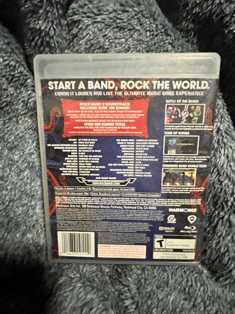 MPN:014633191110Release Year:2008gtin13:0014633191110Rating:T-TeenPublisher:MTV GamesGenre:Rhythm and MusicVideo Game Series:Rock Band SeriesRegion Code:NTSC-U/C (US/Canada)Country/Region of Manufacture:United StatesFeatures:Complete Edition, Manual Included, MultiplayerPlatform:Sony PlayStation 3Game Name:Rock Band 2UPC:0014633191110