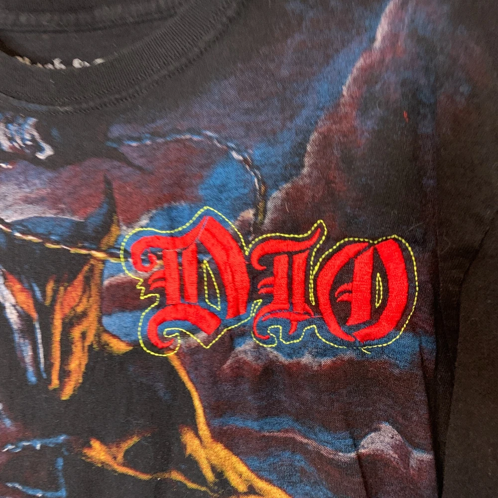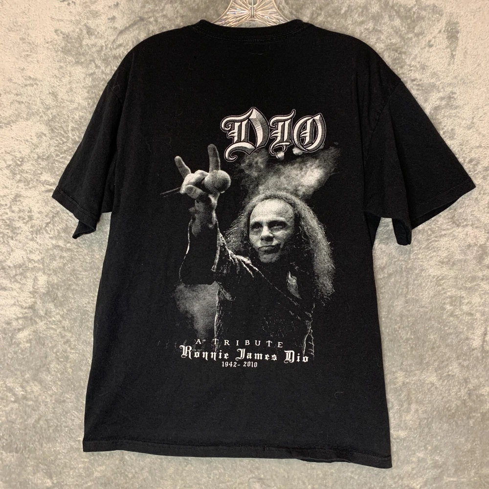 Good Pre Owned condition. There is a small hole on the back near the left shoulder. Please see photos for details. SUPER FAST SHIPPING!!! We ship next business day! If you aren't happy with your purchase we offer 30 day FREE returns. No questions asked! Rock & Death Men Ronnie James Dio Holy Diver Double Sided Graphic Band T Shirt L