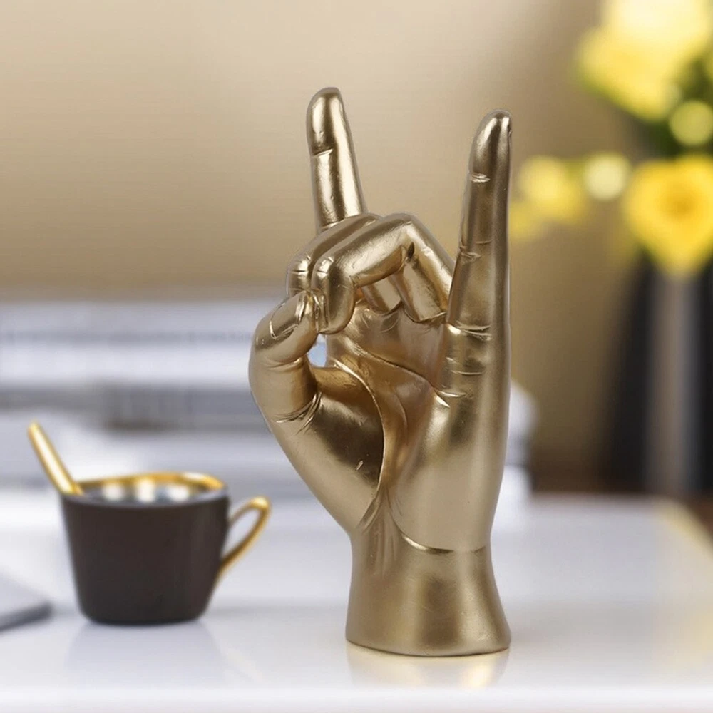 Rock Hand Gesture Statue Rock Music Art Craft Finger Sculpture for Rock6667 [Wide Applications]Hand Gesture Figurine is widely suitable for home decor, office, cafe, restaurant, hotel, apartment, dorm, Music lovers, bar decorations, music festivals, rock lovers, birthday gifts for friends.. [Proper Size]Finger Sculpture is in size 12cm x 8.5cm x 19.5cm/4.72 inch x 3.35 inch x 7.68 inch [Premium Material]Rock music Hand Gesture Statue is made of high quality resin material, with fine texture, and delicate. []Finger Gesture Statue is also an exquisite gift choice for families and friends on birthdays, holidays, festivals, etc. [Novelty Design]Rock music Hand Gesture Sculpture is designed with elegant lines and detailed carving, light luxury and . Specification: L Hand size: 12 x 8.5 x 19.5cm Material: Resin colour: gold Package Contents: 1 x Rock music Hand Gesture Statue