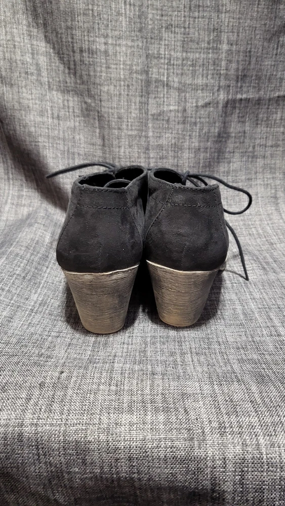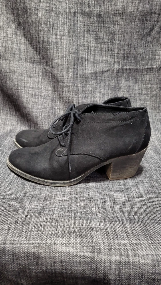 Step out in style with these Rocket Dog women's black suede lace-up ankle boots. Featuring a modern block heel and timeless design, these boots are versatile and perfect for various occasions. Lightly used with some signs of wear, as seen in photos, but still in great overall condition. Features: Design: Lace-up closure with a stylish block heel Color: Black suede with a matching heel Material: Suede upper, synthetic sole Collectible Item: Fashionable and modern casual design by Rocket Dog Care Instructions: Spot clean with a suede brush or suede cleaner Condition: Pre-owned and lightly used. Some wear is visible on the soles and upper suede, as shown in photos. Structurally sound with no major defects. Sold As-Is: By purchasing, you acknowledge the boots are in as-is condition and should request additional details if needed. I will verify the condition again before shipment and notify you if there are any discrepancies. Shipping: Item will be securely packaged and shipped via USPS Ground Advantage within 2 business days after payment is received. Tracking will be provided. Note: These boots have been well-loved but still have plenty of life left. Please see all photos for an accurate representation of their condition
