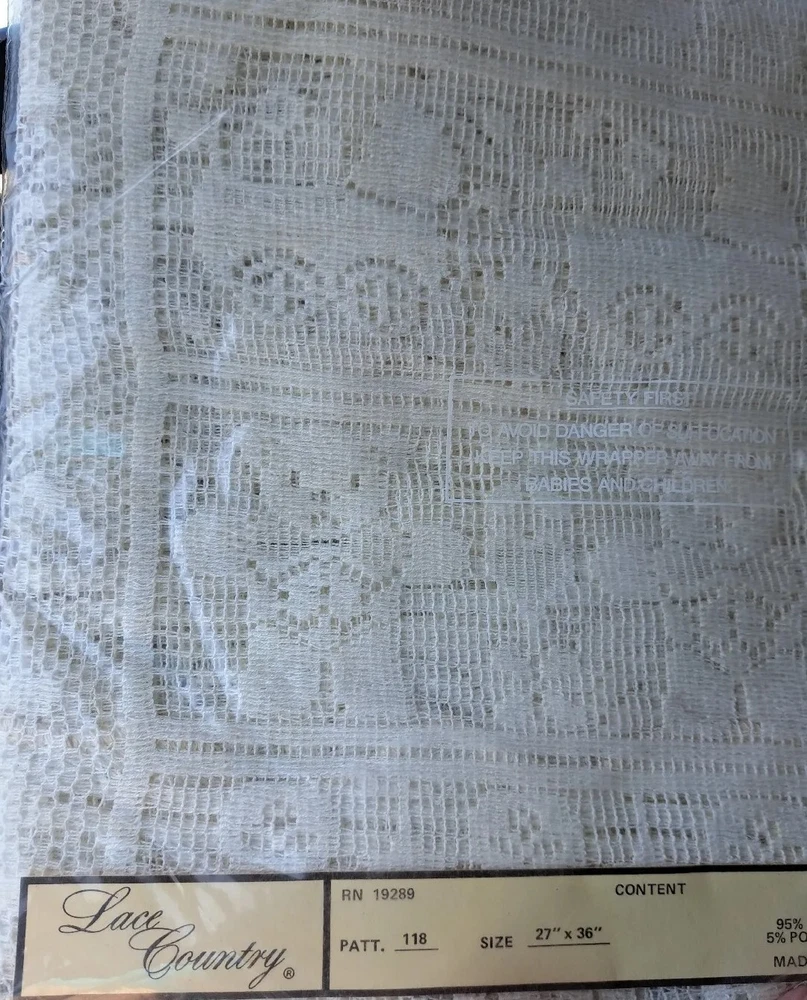Lace Country Rocking Horse #118 White Lace Fabric Panel Vintage NEW in original packaging 27” x 36” 95% Cotton 5% Polyester Made in UK Please view all photos zooming in on them as they are part of the description for you to judge condition Will ship in a polymailer envelope