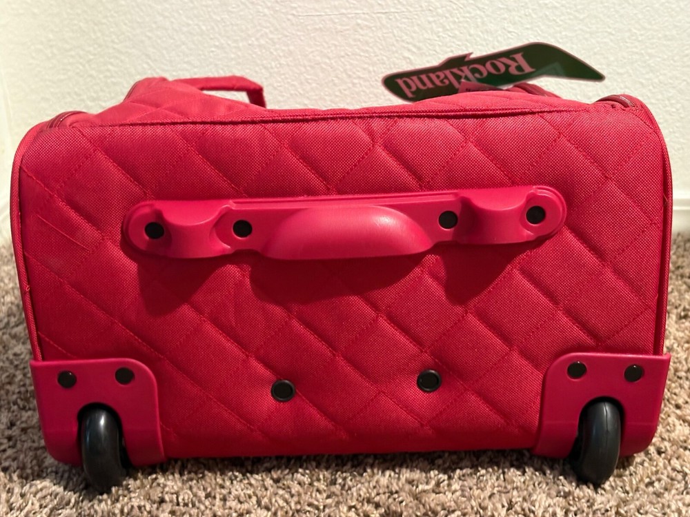 The Rockland Melrose Upright Wheeled Underseater Carry-On Luggage in Red is a compact 15-inch carry-on bag designed for convenient travel. It features a sturdy design, and has dimensions of 15x4x9 inches. Ideal for short trips or as an additional bag for your main luggage, this underseat luggage is perfect for storing essentials while on the go.