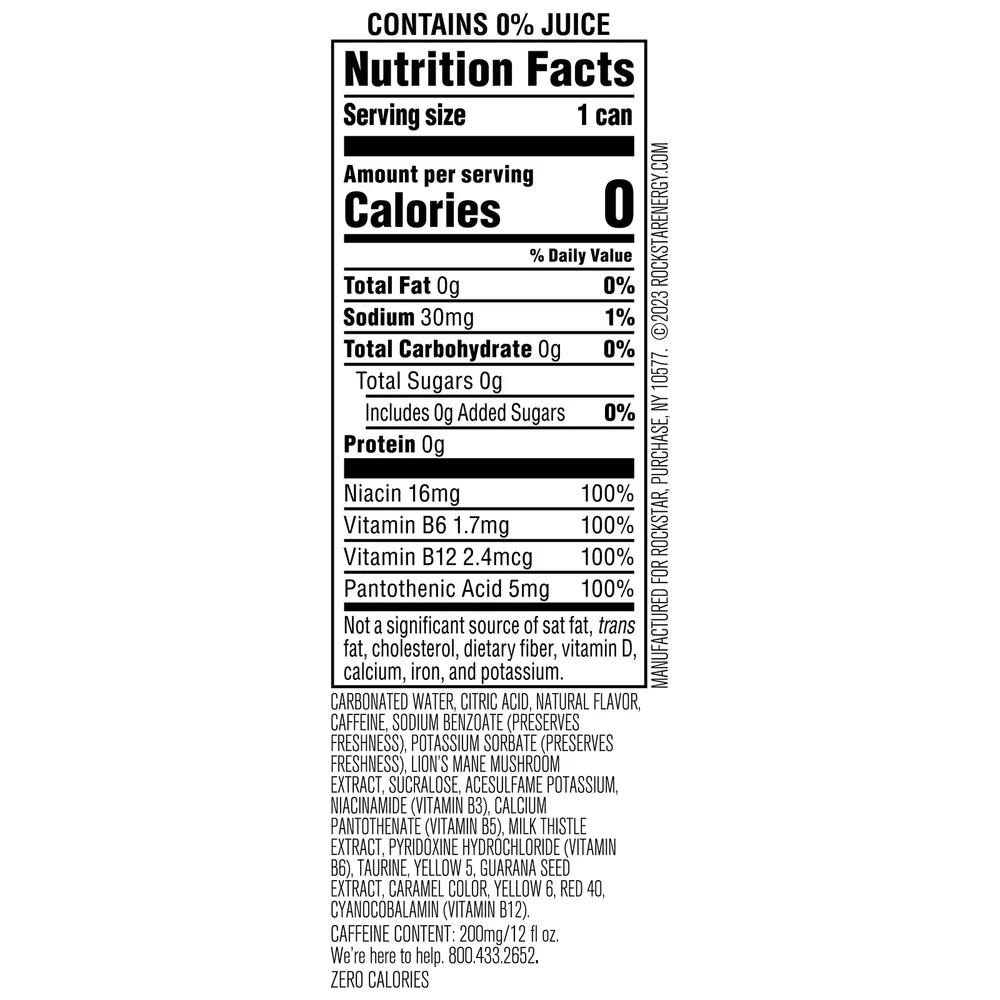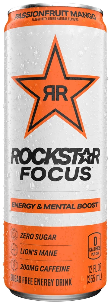 Product details Rockstar Focus Energy Drink is made with lion’s mane for energy & mental boost. Rockstar Focus Energy Drink has zero calories and zero sugar, all flavor, no guilt. With 200mg Caffeine per can, Rockstar Focus Energy Drink is your energy & mental boost companion, so you can be in the moment. Boss your day with sustained energy & focus. Rockstar Energy Drink is designed for those who lead active lifestyles - from Athletes to Rock Stars. Includes (12) 12 oz cans of Rockstar Focus Energy Drink Passionate mongo flavor, energy and mental boost* with Lion’s Maine, Zero Sugar, Zero Calories Lion’s Mane: popular mushroom meets OG Rockstar Energy Zero Sugar and Zero Calories: Rockstar Focus Energy Drink is all flavor, no guilt 200mg Caffeine: Rockstar Focus Energy Drink is your energy & mental boost companion so you can be in the moment Rockstar Focus Energy Drink: Boss your day. Sustained energy & focus. 12oz 12pk Zero Sugar Zero Calories