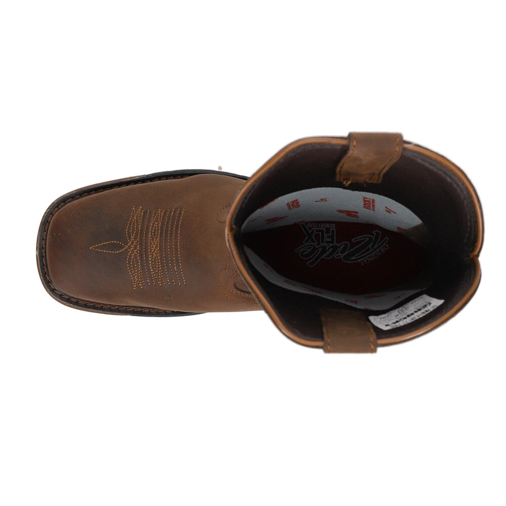 Original Ride FLX Waterproof Soft Toe Work Boots RKW0298 Product Details Leather upper Pull on entry Waterproof Memory foam Rubber outsole The Rocky Original Ride FLX Women's collection is all about lightweight, flexible comfort - everything you could want in a western boot and comfort where you need it the most. Thick EnergyBed insoles allow for maximum comfort, while rich full grain leathers and flexible cement construction allows you to put your best foot forward. Make any terrain worry-free with oil and slip resisting outsoles, made of rubber and EVA for added stability and comfort. This waterproof women's western boot looks as good as it feels and will help make your day a little easier. Additional Details Color: Brown Occasion: Casual Gender: Womens Age: Adult Brand: Rocky