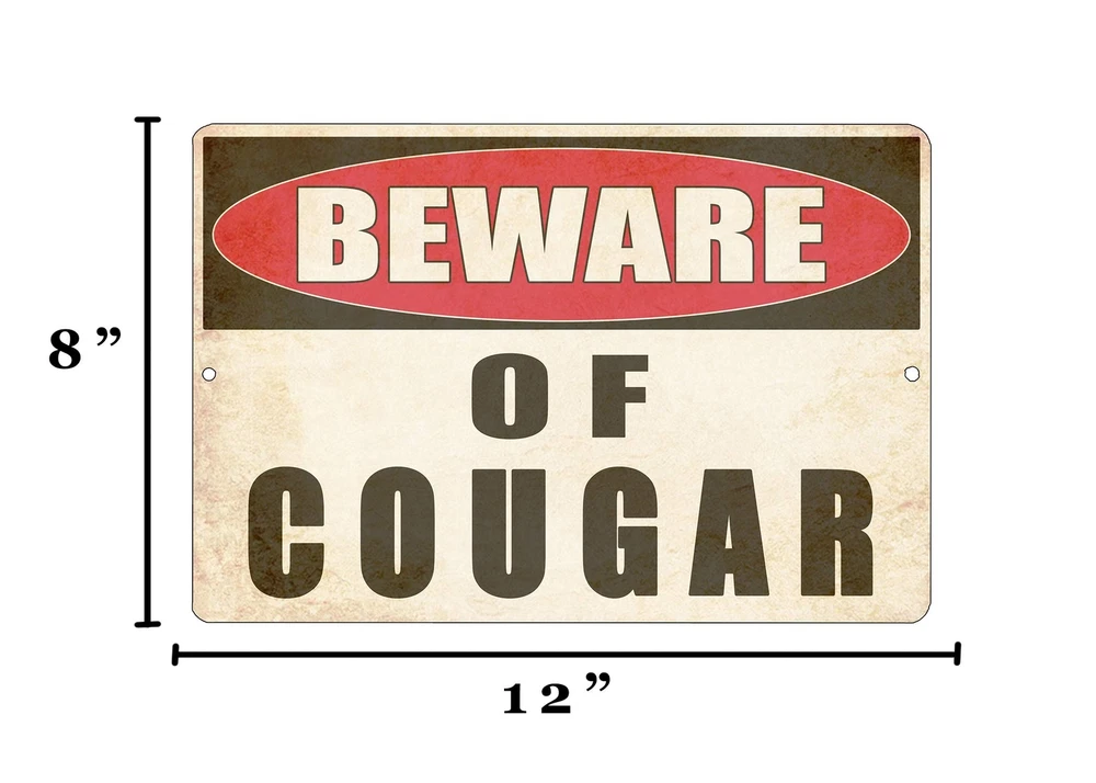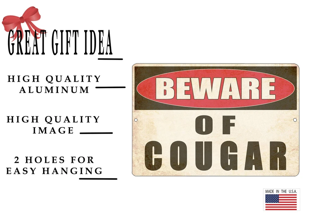 This Funny Bar Sign Makes a Great Gift For Anybody . Funny Sarcastic Man Cave Sign Work Office Home Yard Shop Door Garage Sign Makes a Great Gift For Father's Day Mother's Day Christmas or Birthday Present Warning Beware of Cougar Funny Novelty Metal Sign Make a Great Sarcastic Gift Warning Beware of Cougar Perfect Yard Fence or Wall Decoration For a Man Cave Bar or Garage Shop Home Office Work Perfect gift 12" x 8" Aluminum Sign Indoor Or Outdoor Makes a Great Gift For Christmas Birthday Mother's Day Father's Day Anniversary 2 Holes For Easy Hanging Perfect Gift For Him or Her Proudly Made In The USA