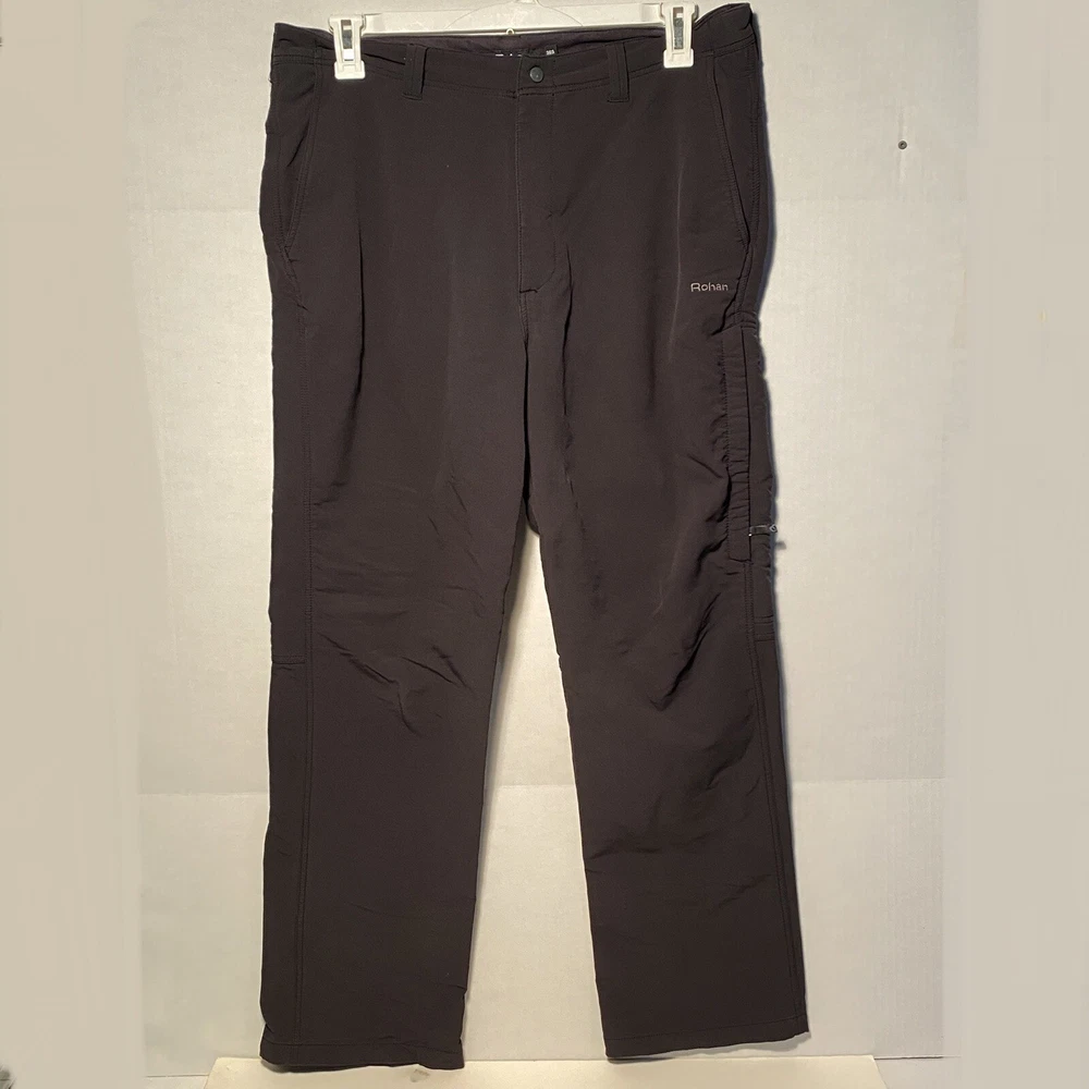 Rohan 36s Striders Trousers Men UV Protection W36 L29 Black Walking Hiking Preowned in very good condition minimal signs of wear overall 8/10 These Rohan Striders Trousers are perfect for any occasion, whether it's for travel, casual wear, or work. The trousers come in a sleek black color and are made from a comfortable blend of polyamide and elastane fleece material. The trousers feature a zip and button closure, as well as a cargo pocket for added convenience. Fast responses if any questions and returns accepted if any issues with products