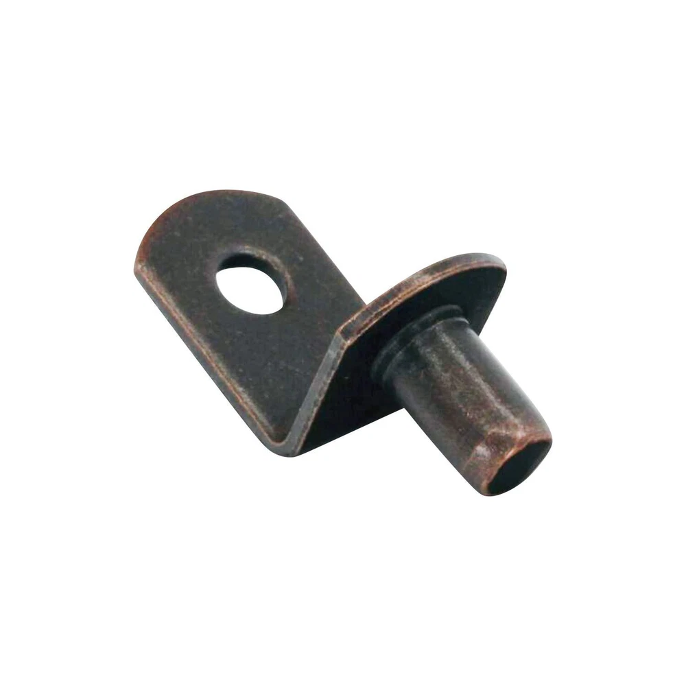 The L-Shaped shelf support pegs have an antique copper finish. L- shaped shelf pins fit into any predrilled (1/4") holes. Perfect for shelf support in book shelves, cabinets or other shelving units. Antique Copper Finish 1/4 in Bracket style shelf support 25 Per bag Easy to install. Use your hand to press the shelf pin into the cabinet hole.