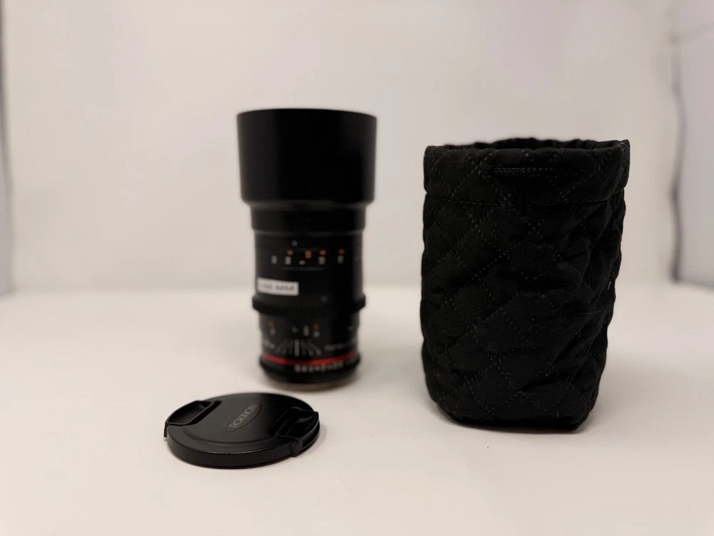 Rokinon 135mm T2.2 Cine ED UMC Lens (Canon EF) – Fully Functional, Excellent Condition! Description: The Rokinon 135mm T2.2 Cine ED UMC is a high-quality telephoto cinema lens designed for filmmakers and videographers who need stunning image quality with precise manual focus control. With a fast T2.2 aperture , this lens excels in low-light conditions and provides a shallow depth of field for beautiful subject isolation. The extra-low dispersion (ED) glass minimizes chromatic aberrations, while the multi-coated optics reduce flares and enhance contrast. This lens is in excellent condition , fully tested, and ready for professional use. Condition: ✔️ Fully functional – no issues with image quality or mechanics ✔️ Optics are clean and free of scratches ✔️ No major signs of wear ✔️ No front or rear lens caps included Key Features: ✅ 135mm T2.2 Telephoto Cine Lens – Ideal for portraiture, close-ups, and cinematic telephoto shots ✅ Fast T2.2 Aperture – Excellent for low-light shooting and achieving soft background blur ✅ Extra-Low Dispersion (ED) Glass – Minimizes chromatic aberrations for sharper images ✅ Multi-Coated Optics – Reduces flares and enhances contrast ✅ De-Clicked Aperture Ring – Smooth, silent exposure adjustments ✅ Cinema-Style Focus and Aperture Gears – Compatible with follow-focus systems ✅ Canon EF Mount – Works with full-frame and Super 35mm sensors What’s Included: ✔️ Rokinon 135mm T2.2 Cine ED UMC Lens (Canon EF Mount) ❌ No Front or Rear Lens Caps 💰 Fast Shipping & Secure Packaging! 🔥 Buy with Confidence – Trusted Seller with Positive Feedback!