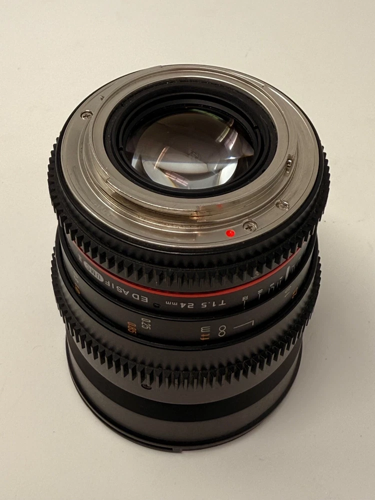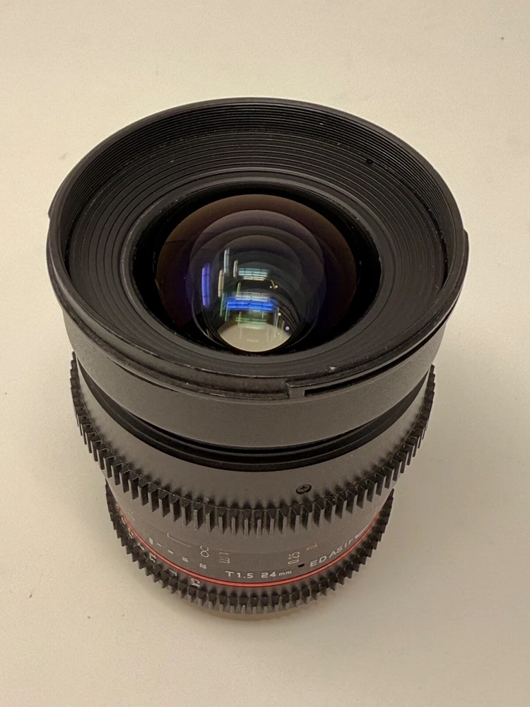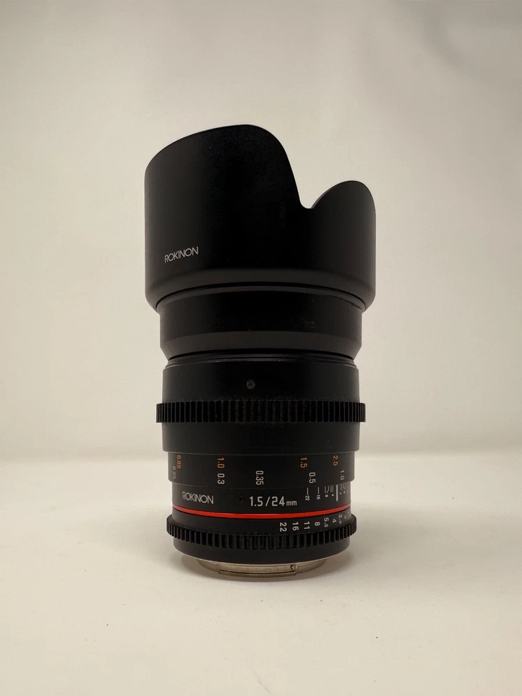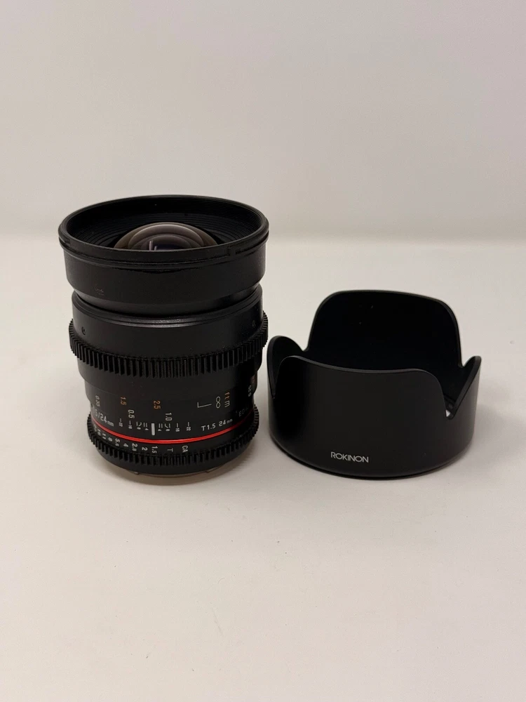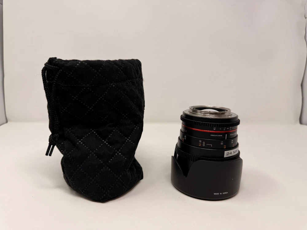 Rokinon 24mm T1.5 Cine DS Lens (Canon EF) – Excellent Condition! Description: The Rokinon 24mm T1.5 Cine DS is a high-quality cinema lens designed for filmmakers and videographers who need sharp, cinematic visuals with a fast T1.5 aperture for excellent low-light performance and beautiful bokeh. This lens features multi-coated optics to reduce flares and ghosting, de-clicked aperture control for smooth adjustments, and a cinema-style focus and aperture gear design for use with follow-focus systems. This lens is in excellent condition , fully tested, and ready for your next production. Condition: ✔️ Fully functional, optics are clean and free of scratches ✔️ No major signs of wear ✔️ Comes with a protective lens bag (no original case) ✔️ Does NOT include front or rear lens caps Key Features: ✅ 24mm T1.5 Cine DS Lens – Wide-angle field of view, perfect for cinematic shots ✅ Fast T1.5 Aperture – Great for low-light shooting and shallow depth of field ✅ Multi-Coated ED Optics – Minimized flares and improved contrast ✅ De-Clicked Aperture Ring – Smooth, silent exposure adjustments ✅ Cinema-Style Focus and Aperture Gears – Compatible with follow-focus systems ✅ Canon EF Mount – Works with full-frame and Super 35mm sensors What’s Included: ✔️ Rokinon 24mm T1.5 Cine DS Lens (Canon EF Mount) ✔️ Protective Lens Bag ❌ No Front or Rear Lens Caps Included 💰 Fast Shipping & Secure Packaging! 🔥 Buy with Confidence – Trusted Seller with Positive Feedback!