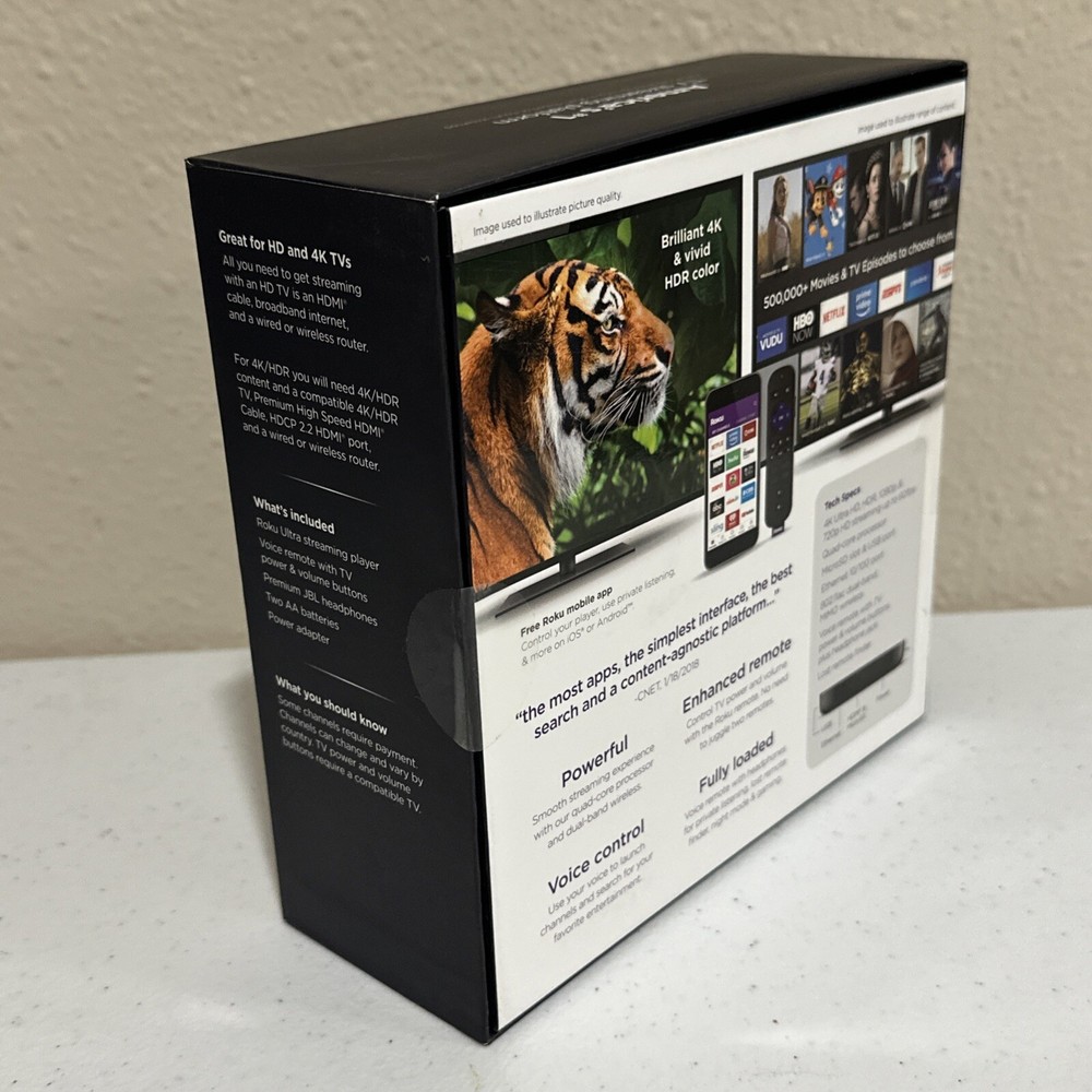 Roku - Ultra 4K Streaming Media Player with Enhanced Voice Remote - Black NEW