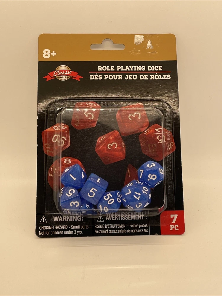 Role Playing Dice 7 Piece Dice Set Pearlescent Blue Classic Games Age 8+ New