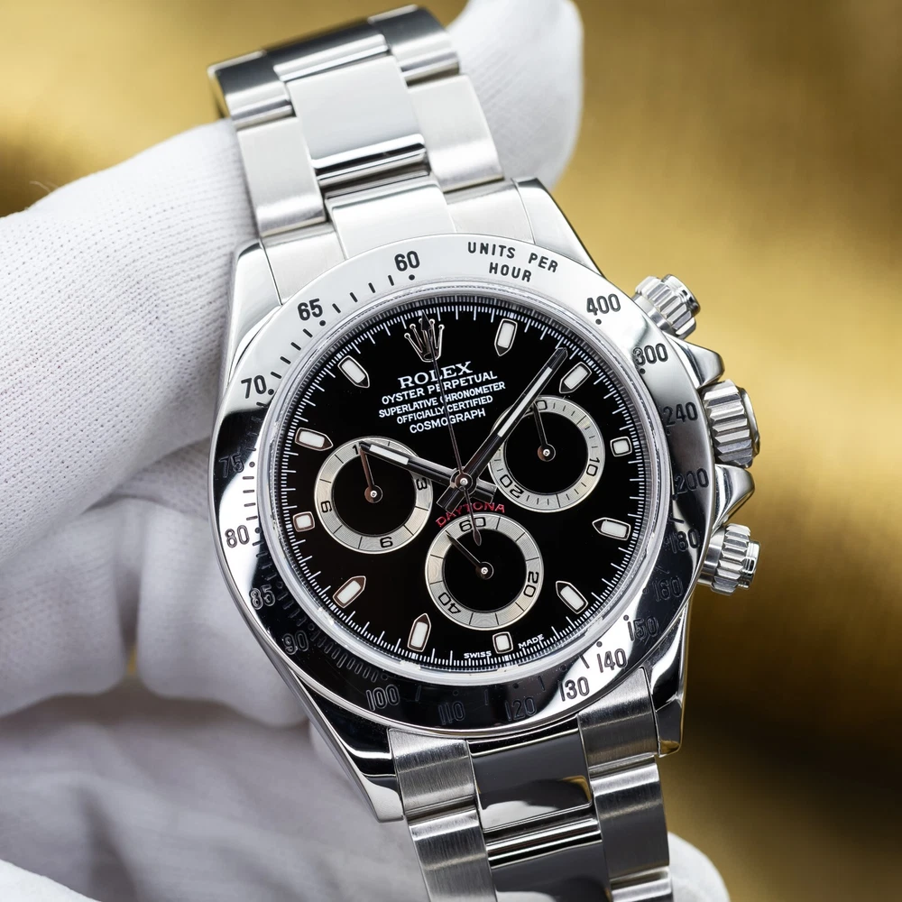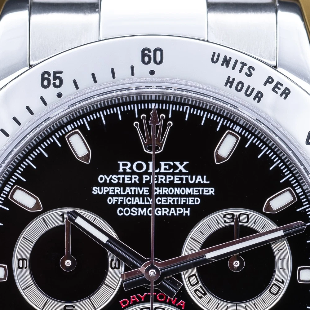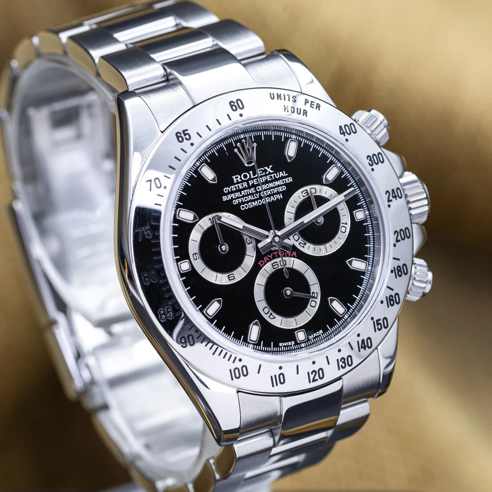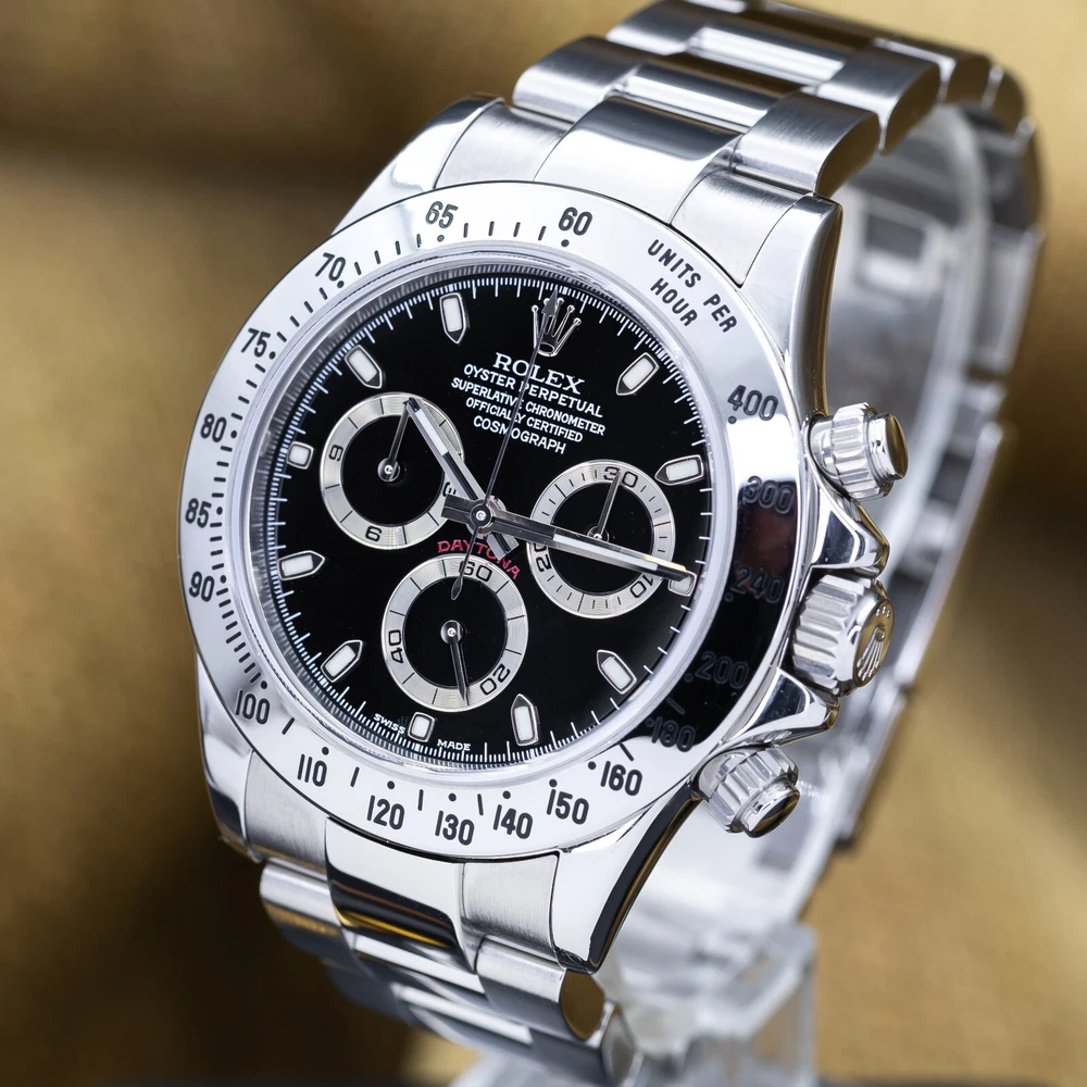 Up for sale or trade is a full set black dial K serial Daytona from 2003, with the correct box, papers and accessories. It has just come back from a full service and is ready for a new home. This thing is a time capsule! For those that remember what the Daytona was before the ceramic bezel. This one is special indeed. Get it while you can! Watch is in incredible condition and running great. Comes fully linked with all the accessories. Watch just returned from a full Rolex service and comes with the Rolex service card and two year Rolex service warranty. Nothing is needed on this watch, it’s ready to go! We love everything about timepieces and thoroughly appreciate helping others discover the enjoyment of this pastime. Whether it’s helping you find your grail, or the next watch to fill that empty slot in your watch box, we consider it a privilege to be part of your journey. Our aim is to be as fully transparent as possible in all our listings. Please let us know if you have questions about this watch or any of the others we have for sale. We’re always willing to entertain trade values up or down. We look forward to helping you secure your next timepiece! INCLUDED Rolex Green Leather Box Rolex International Warranty Paperwork (Dated 2003, K Serial) Rolex Cosmograph Daytona Instruction Manual Rolex Care Booklet Rolex Green Card Sleeve Rolex Superlative Chronometer Red Hang Tag Rolex Cleaning Cloth Rolex Plastic Bezel Protector OFFERS Our pieces are always priced very competitively to the market. However, you are always welcome to make a reasonable offer. SHIPPING All watches are in stock and will usually be shipped to an eBay authenticator within 2 business days of payment verification. We offer free, fully insured FedEx shipping with tracking on all purchases with a US delivery destination. We also ship internationally via fully insured FedEx International Priority. However, buyers will be responsible for any potential import duties and customs fees applied by their country. All watches are carefully and professionally packaged to guarantee the safe arrival of your new timepiece. TAX eBay subjects all purchases made in America to its state’s applicable sales tax. That amount will be determined once you make your order. International customers are responsible for taxes applied by their country. AUTHENTICITY With over a decade of experience in the industry, we at Watches of Charlotte pride ourselves on being a trusted name in the industry. We work with watchmakers to authenticate our watches so we can guarantee that all of our pieces are 100% authentic and original. All photos used in our listings are taken in-house and are of the actual timepieces being purchased. We fully stand behind the authenticity of every product we sell. For extra peace of mind, eBay also offers an Authenticity Guarantee. This means that every detail of your watch is inspected by independent experts before you receive it, so you can have complete confidence. Our commitment to providing exceptional service has garnered us a loyal, worldwide clientele and a 5-star ranking on eBay, Facebook and elsewhere - check our reviews! ABOUT US We love everything about watches and thoroughly appreciate helping others discover the enjoyment of this pastime. Whether it’s helping you find your grail or the next watch to fill that empty slot in your watch box, we consider it a privilege to be part of your journey. Our aim is to be as fully transparent as possible in all our listings. Please let us know if you have questions about this watch or any of the others we have for sale. We’re always willing to entertain trade values up or down. We look forward to helping you secure your next timepiece!