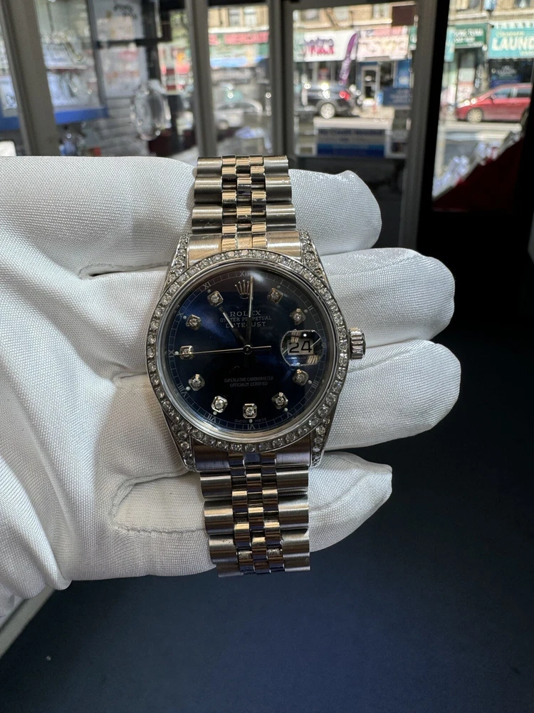 Rolex Diamond Bezel & Diamond Dial Jubilee Band Blue Dial. Condition is Pre-owned. Shipped with USPS Ground Advantage.