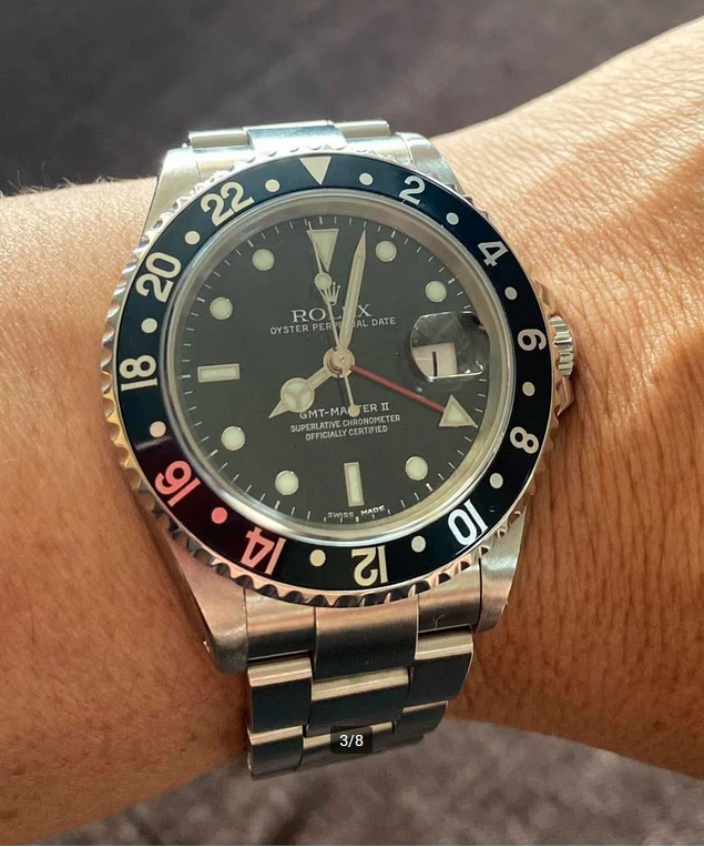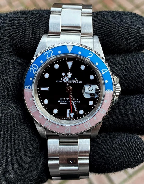 Item Description: Up for sale is a stunning Rolex GMT-Master II 116710LN , a quintessential timepiece that embodies luxury, precision, and functionality. This watch is not just a statement piece; it is a tool designed for the modern traveler, featuring a dual-time zone function that has made it a favorite among pilots and globetrotters alike. Key Features: Model: Rolex GMT-Master II Reference Number: 116710 Case Material: Stainless Steel Bezel: Black Cerachrom (Ceramic) with 24-hour markings Dial Color: Black with luminous hour markers Bracelet: Oyster bracelet with Oysterlock clasp Movement: Automatic, Caliber 3186 Water Resistance: Up to 100 meters (330 feet) Condition: This watch is in excellent condition, having been meticulously cared for. The stainless steel case shows minimal signs of wear, and the black ceramic bezel is scratch-resistant and pristine. The sapphire crystal is flawless, ensuring perfect visibility of the dial. Included Accessories: This listing includes an exceptional bonus: four original Rolex bezel inserts , allowing you to customize your watch according to your style or preference. Each insert is genuine and adds versatility to this already iconic timepiece. Original Black Bezel Insert (installed) Original Pepsi Bezel Insert (red/blue) Original Coke Bezel Insert (black/red) Original Root Beer Bezel Insert (brown/gold) These inserts are in excellent condition and have been sourced directly from authorized dealers. Authenticity Guarantee: Rest assured, this Rolex GMT-Master II comes with all necessary documentation to verify its authenticity. Included are: Original Rolex warranty card Instruction manual Service papers (if applicable) The serial number can be verified through official Rolex channels.