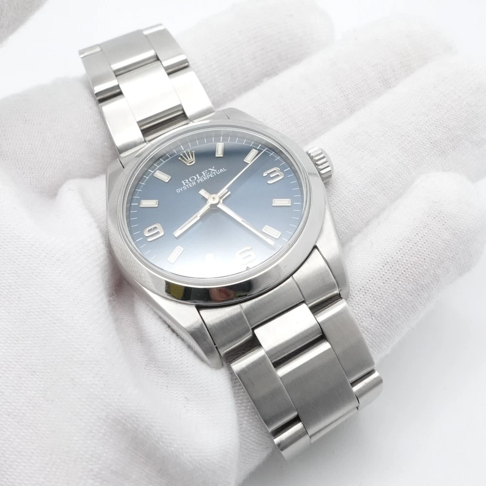 Welcome to my e B a y Store Rolex Oyster Perpetual Reference - 77080 Stainless Steel Blue Dial Automatic Watch Case Size - 31mm Fits up 6.25" Wrist Very Great & Professionally Polished No Box & Papers Bid With Confidence Feel Free to ask any questions before bidding pleas e If you would like additional pictures please send me a message Check out my other listings for more great deals! 100% Authentic or your Money Back Guarantee!! Free Shipping on All Items!