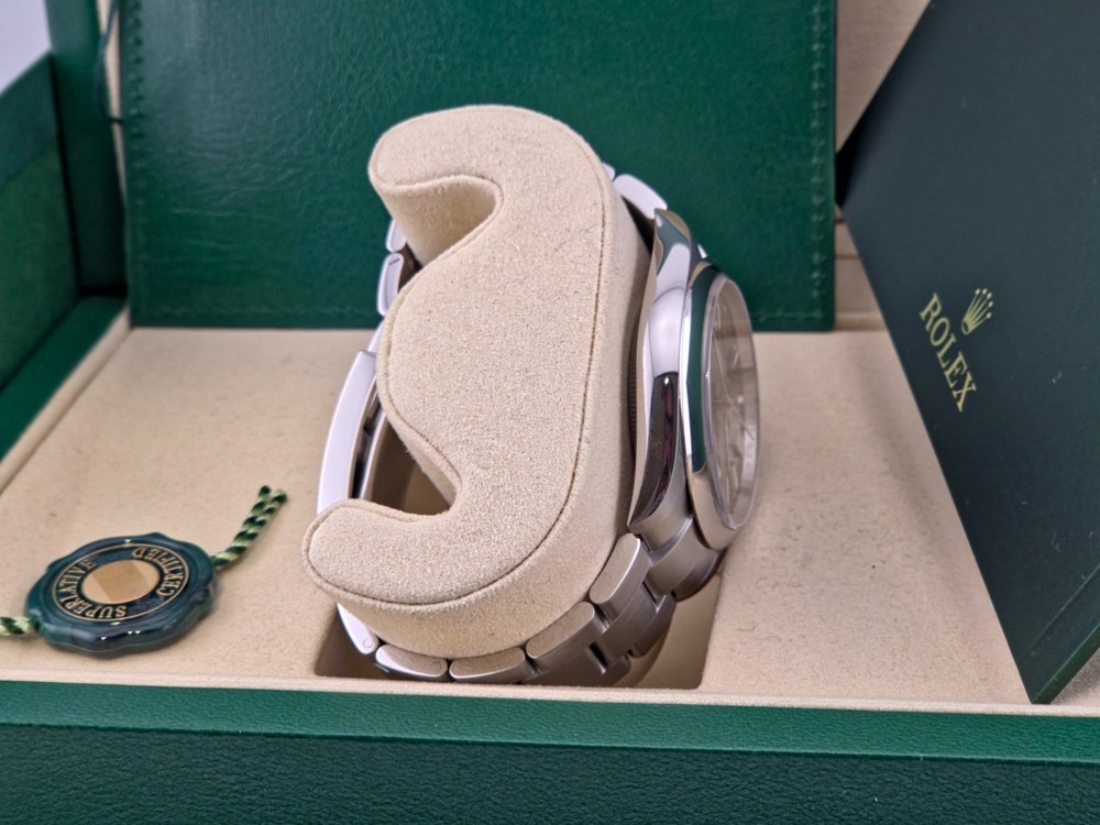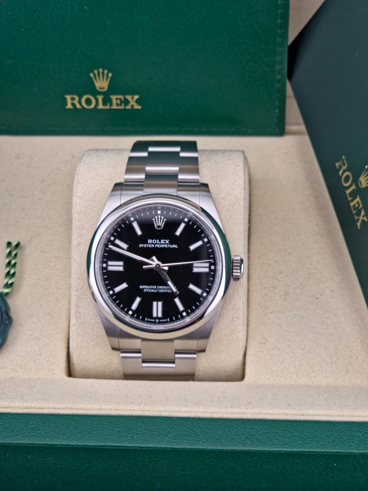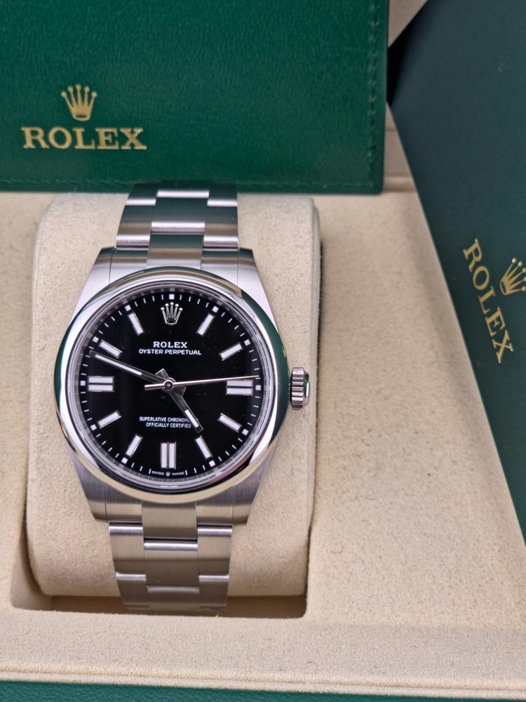 Brand new Jan 2026 The Rolex Oyster Perpetual 41mm Black Dial 134300-008 is a brand new watch with a sleek silver bezel and matching stainless steel case and band. Featuring a classic round shape, this sporty yet casual timepiece boasts a mechanical automatic movement with 31 jewels and a central second feature. With a water resistance of 100m and a manufacturer warranty of 5 years, this Swiss-made wristwatch is a stylish and reliable accessory for any man's collection. Complete with original box, papers, and a left-handed design, this Rolex Oyster Perpetual watch is a timeless piece that exudes sophistication and quality craftsmanship.