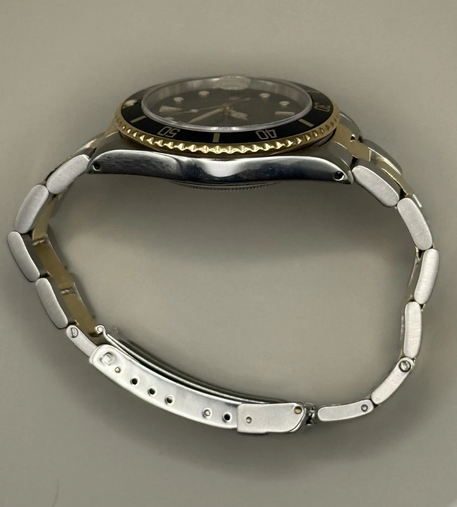 Rolex 16803. This watch has been serviced and polished very recently. Hour hand has some signs of wear. Bezel insert is scratched and does not click into bezel well. Bezel does not rotate well. Needs some adjustment. Rolex logo as been almost polished away on buckle, but can still be seen. Watch has a total of 11 links. Not sure if the bracelet is aftermarket or original. But buckle is original. Small scratch on crystal at 10 o’clock. Barely noticeable. This is truly a great daily Rolex! I am happy to answer any questions.