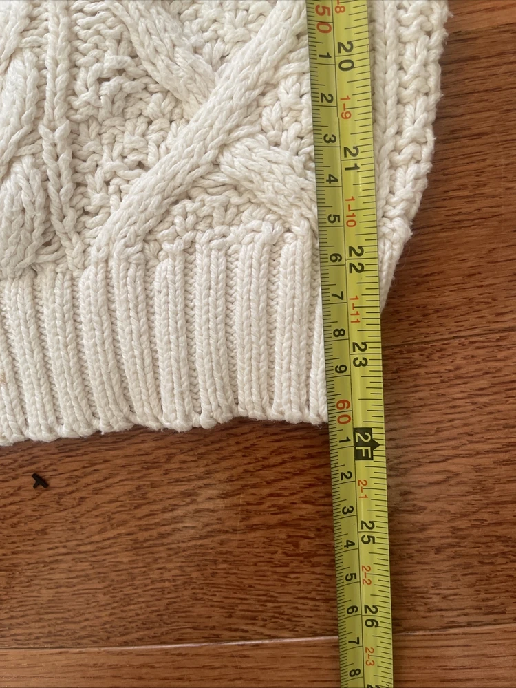 Nice vintage sweater. Please see photos for actual measurements. Sleeves are shorter than the usual long sleeves. Probably stretchable. There is an area at the top that could use a reinforcement stitch.