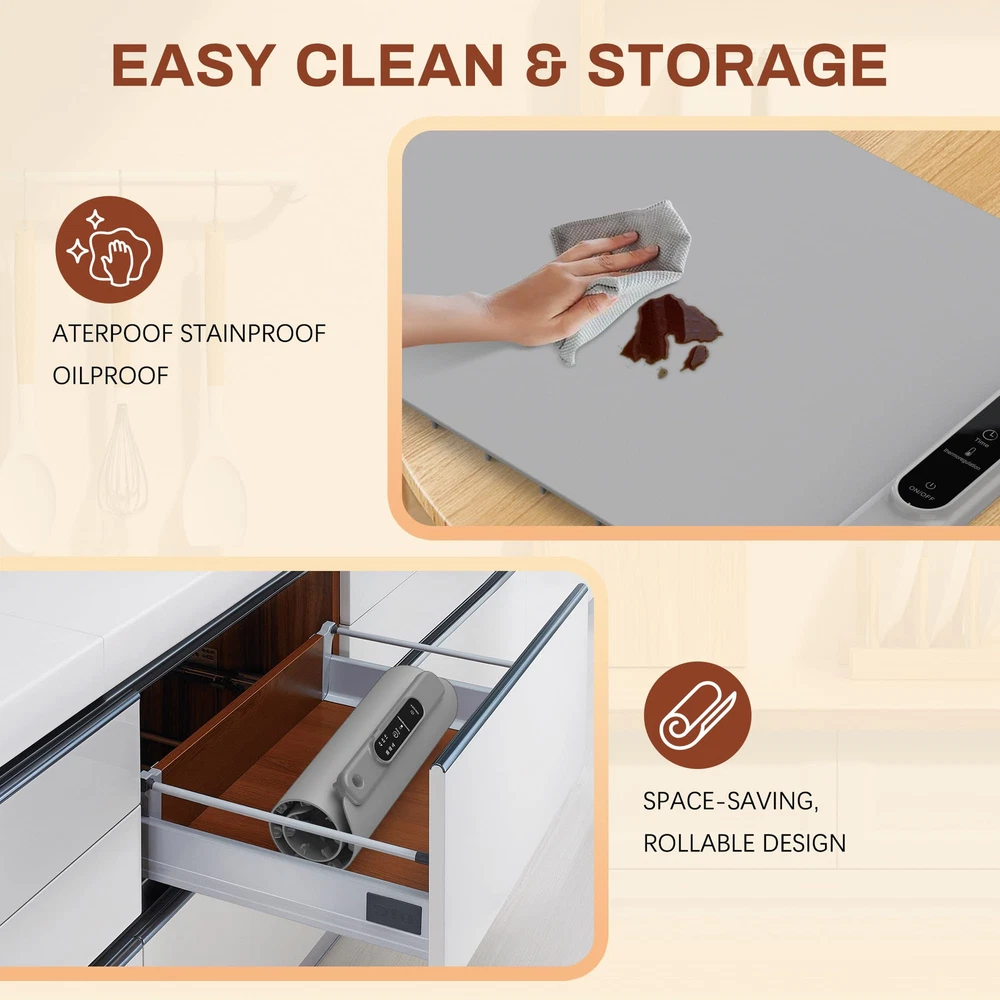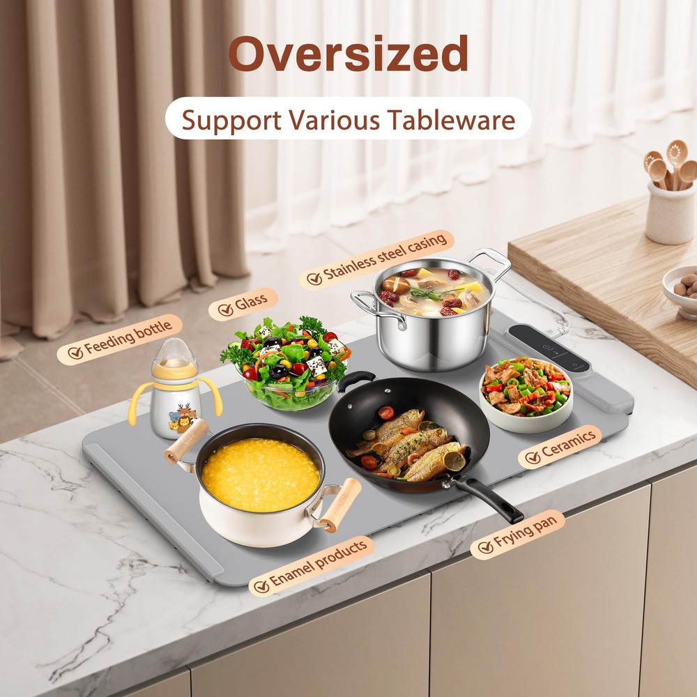 Warming Mat for Food - Full Surface Heating, Rollable Food Warming Mat & Premium Silicone Nano-Material,3 Temperature Settings,Food Warmers for Parties, Suit for Family Gatherings,Holidays Description Features: Heating Plate for Food - Keep Dishes Warm with Adjustable Temperature, Energy Efficient, Non-slip Surface, Choice for Hot Plate for Food Warming. Rapid Heating: Equipped with advanced heating elements, this heating plate warms up quickly to keep your dishes at the perfect temperature in no time. Even Heating Distribution: Ensures uniform heating across the entire surface, preventing hot spots and keeping every dish equally warm. Multiple Temperature Settings: With adjustable temperature controls, you can choose the ideal heat level for different types of dishes. Safe and Durable: Made of high-quality materials, it is built to last and features safety protections like overheat protection. Product Details: Color: Grey Material: silica gel Special Feature: Automatic Shut-Off Brand: SynWave Heating Elements: 6 Product Dimensions: 25.5"D x 15.5"W x 1.5"H Manufacture Year: 2024 Manufacturer: SynWave Color: Grey Material: silica gel Special Feature: Automatic Shut-Off Brand: SynWave Heating Elements: 6 Product Dimensions: 25.5"D x 15.5"W x 1.5"H Manufacture Year: 2024 Manufacturer: SynWave Item Weight: 4.29 pounds Country of Origin: China Item model number: RCB-003 Date First Available: October 28, 2024 Handling We will ship all orders within 3 business days of payment. Delivery We do not ship outside of the Continental US. Feedback We take our reputation seriously, we buy and sell online, so we understand the value of trust. If you are unsatisfied with your order, please contact us and we will work with you to resolve it to your satisfaction.