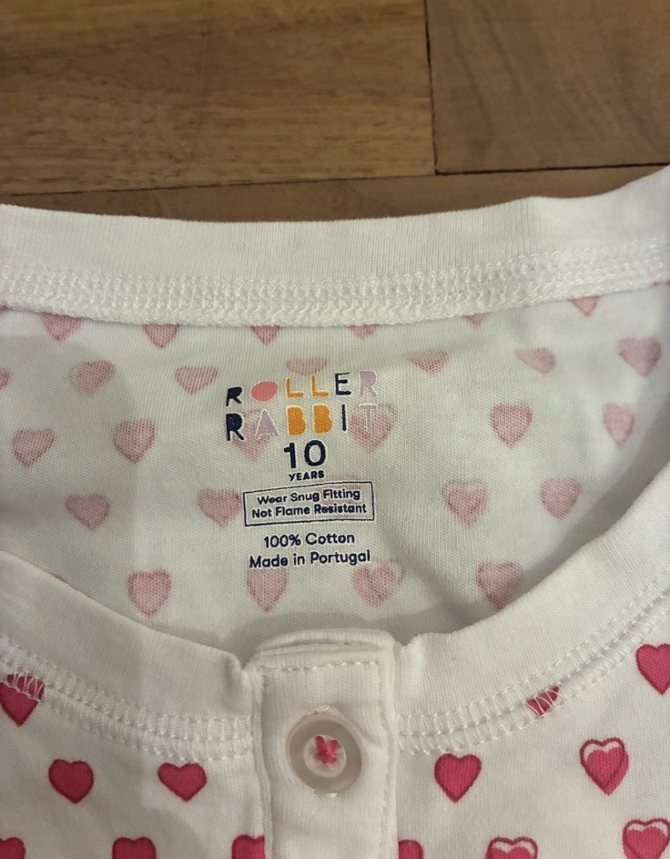 Roller Rabbit Girls Heart Print Pajama Set 100% Cotton Size 10 White Pink
