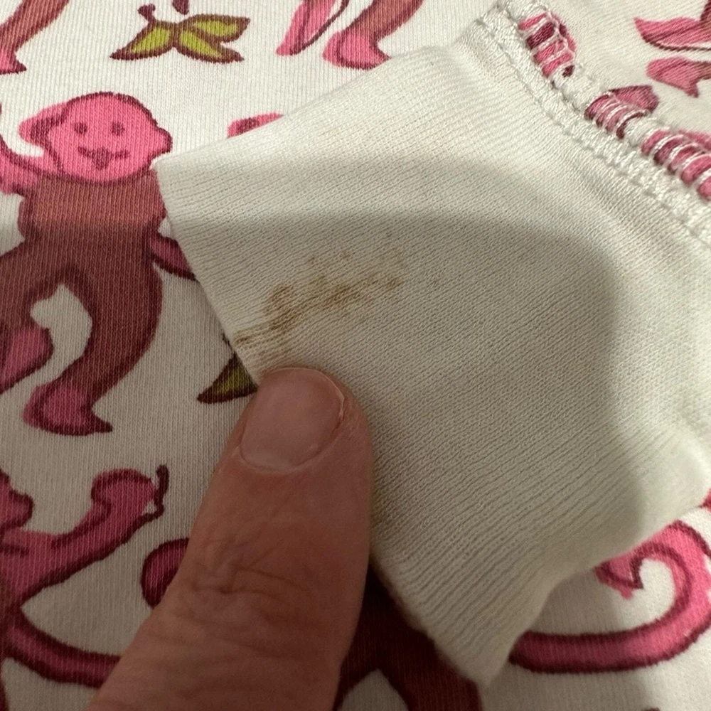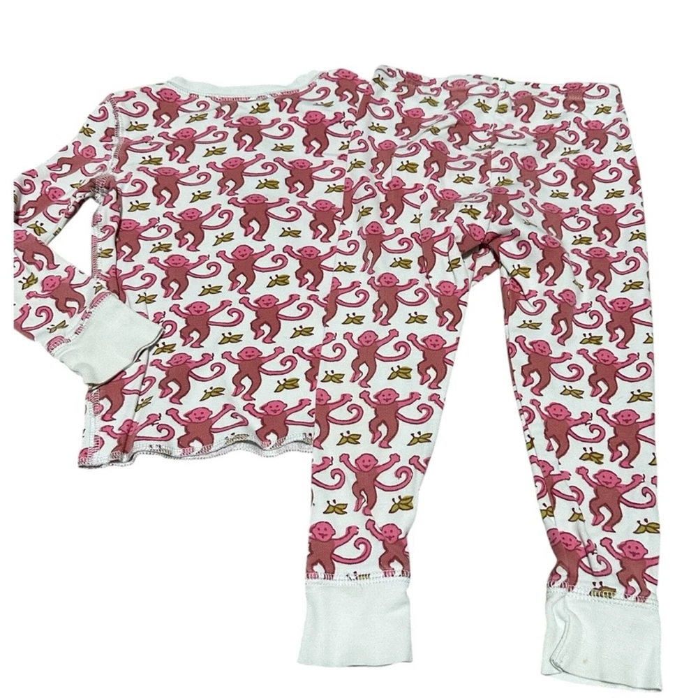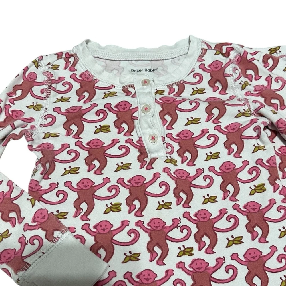 Roller Rabbit Pink Monkey Pajama Set Girl's 2 2T Pants Long Sleeve Top Cotton Size 2 Good pre-owned condition, staining on shirt cuffs. See pic. Long sleeve top Pants Pima cotton
