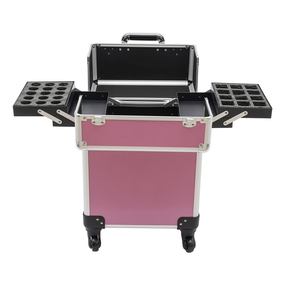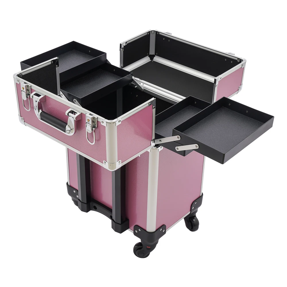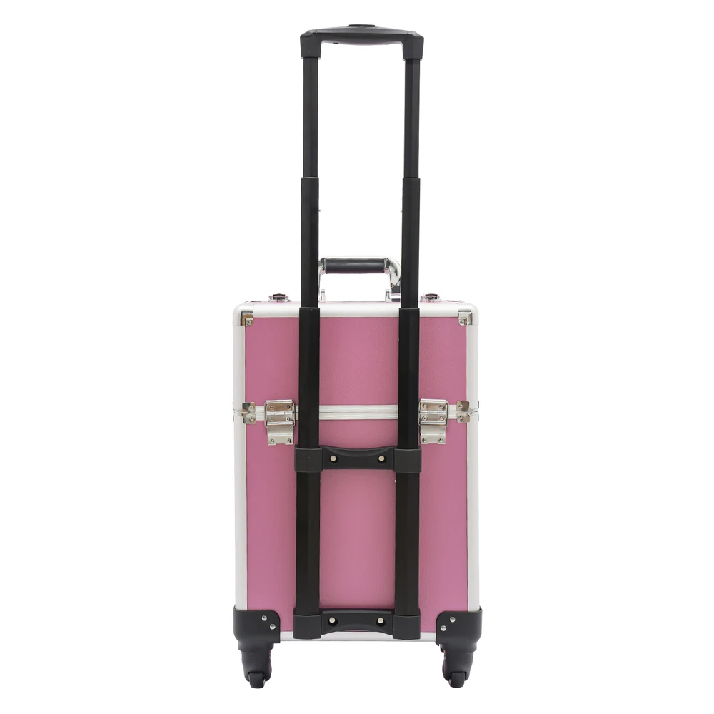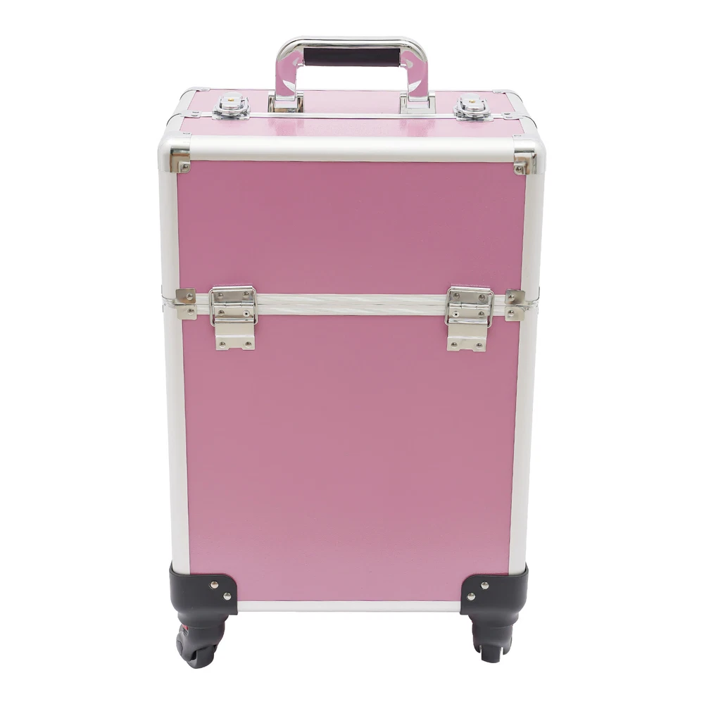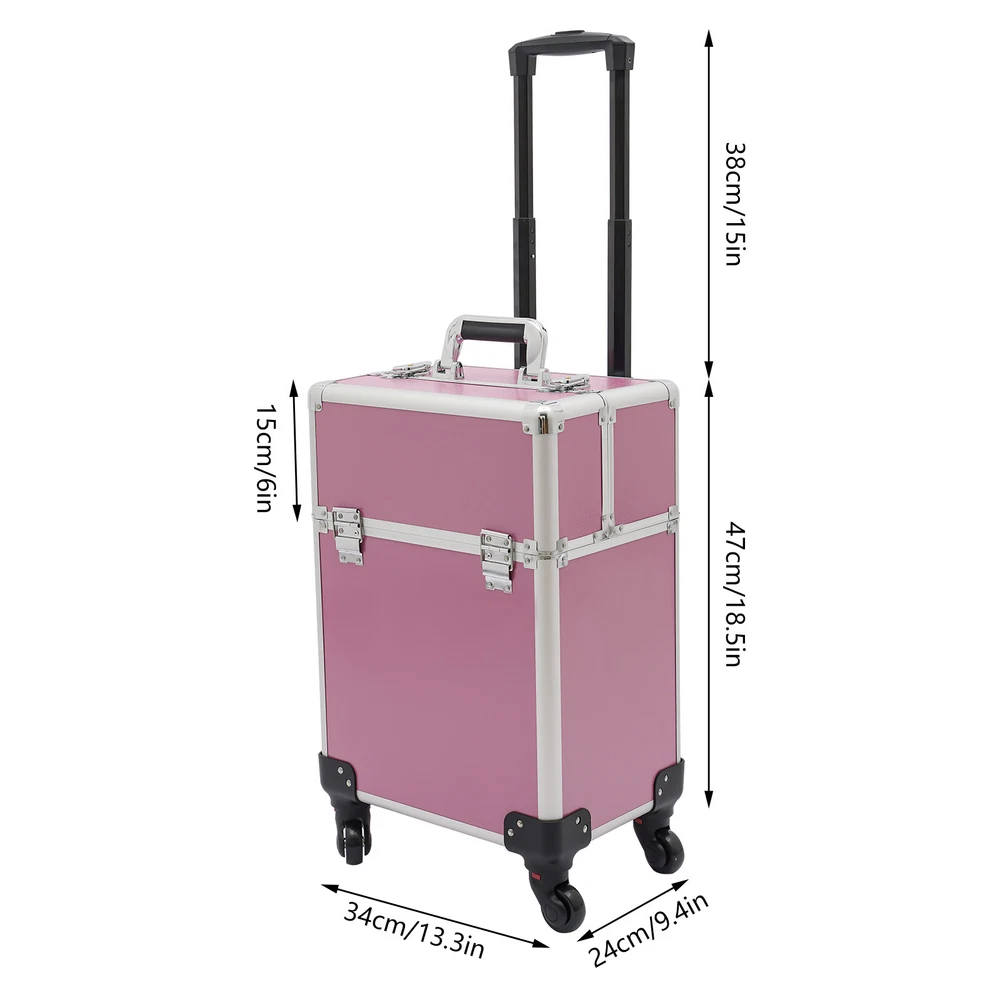 Specifications Material: ABS, Aluminium Alloy, EVA Color: Pink Style: Modern Shape: Rectangular Assembly Required: Yes Mounting Type: Floor Standing Wheel Type: Universal Wheel Carrying Method: Hand-held, Hand-pulled Applicable Nail Polish Bottle Height: About 10cm/3.94in Load Bearing Capacity: About 50kg/110.23lbs Each Tray Size: 21*14*3cm/8.2*5.5*1.1in Case Bottom Size: 32*22*31cm/12.5*8.6*12.2in Telescopic Rod Extension Height from Case: 38cm/15in Product Size: 34*24*47cm/13.3*9.4*18.5in Package Size: 38*29*51cm/14.96*11.42*20.07in Gross Weight: 4.6kg/10.14lbs Net Weight: 4.3kg/9.48lbs Package Included 1*Rolling Makeup Case 4*Universal Wheels 2*Keys Rolling Makeup Case Cosmetic Trolley Organizer Makeup Travel Case 110.23lbs Load Specifications Material: ABS, Aluminium Alloy, EVA Color: Pink Style: Modern Shape: Rectangular Assembly Required: Yes Mounting Type: Floor Standing Wheel Type: Universal Wheel Carrying Method: Hand-held, Hand-pulled Applicable Nail Polish Bottle Height: About 10cm/3.94in Load Bearing Capacity: About 50kg/110.23lbs Each Tray Size: 21*14*3cm/8.2*5.5*1.1in Case Bottom Size: 32*22*31cm/12.5*8.6*12.2in Telescopic Rod Extension Height from Case: 38cm/15in Product Size: 34*24*47cm/13.3*9.4*18.5in Package Size: 38*29*51cm/14.96*11.42*20.07in Gross Weight: 4.6kg/10.14lbs Net Weight: 4.3kg/9.48lbs Package Included 1*Rolling Makeup Case 4*Universal Wheels 2*Keys Description A good makeup case is essential for makeup artists. The rolling makeup case is made of high-quality materials, sturdy and durable. The large capacity design allows you to partition and store different cosmetics, hair tools, and more. With the minimalist style, universal wheels, retractable pull rod, and comfortable handles, it makes your make-up work more convenient! Key Features Premium Materials: This product is made of high-quality ABS and aluminum alloy, which is corrosion- resistant , wear- resistant , fire and scratch resistant , and not easy to fade, ensuring a long service life. Large Capacity : The bottom(12.5*8.6*12.2inches) can store curling irons, nail lamps, hair dryers, and other large items, and the tray can be retracted to store nail polish (about 3.94'' in height) and other cosmetics while making it easy for you to quickly find what you want. Outstanding Load Capacity: The rectangular structure and high-quality materials give the case an excellent weight capacity (up to about 110.23 lbs). You can put all your hair and beauty tools in it with confidence. Protect Your Privacy: Locking latches securely protects valuables inside the case and maximizes your privacy. Carefully Designed: The detachable wheels enable you to replace them conveniently when damaged, which is easy and cost-efficient. The EVA compartment design stabilizes and securely holds the nail polish bottles in place so they don't bump into each other. Flexible Movement: The easy-to-move low-noise universal wheels, telescopic pull rod, and convenient handle make it easy to move the case up and down stairs, in and out of the car, and in the lift. Simple and Generous: The pleasing pink color, three-dimensional structure, and smooth lines give the product a modern feel. Such a beautiful makeup case can nicely decorate your dressing room and make a good impression when you are out at work. Exquisite Gift : The exquisite design and large capacity make this product a great gift to your mother, girlfriend, sisters, wife, and loved ones engaged in the makeup industry. Easy to Install : Simple structure and minimalist design mean you don't need other additional installation, you just need to install the universal wheels and start to use it. Easy Maintenance : A simple construction and smooth surface make this product easy to clean, you just need a towel and water to easily remove dust and residue. Details Wide Opening : With a wide opening( 12.5*8.6in ), it is easy for you to store and retrieve items without messing up other items in the drawer. 2 Keys : The configuration of two keys prevents the worry of losing or forgetting one key. It also enables you to open the case easily. Wrapped Corners: They can better protect the product from wear and collision, thus extending its service life. Application It is recommended for make-up artists from beginners to professionals such as freelance make-up artists, wedding make-up artists, celebrity make-up artists, and make-up interns. It can also be used for traveling or kept at home for makeup enthusiasts, hair barbers/stylists, nail technicians, estheticians, embroiderers, and crafters. This product can be used to store jewelry, cosmetics, nail polish, essential oils, jewelry, makeup brushes, hair tools, electronic accessories, digital cameras, toiletries, clothes and shoes, and can be used as luggage. Notes Please note that cosmetics are not included. Please use this product within its carrying capacity. The service wear of the case is a normal phenomenon. In the process of daily use, please try to avoid excessive impact and drop to extend the lifespan of the product. Please clear the wheels in time to maintain smooth movement. Please use soft tools and water to clean. Please keep away from corrosive liquids. Please avoid long-term exposure to the sun. It's normal for the tie rod to wobble a little bit as it needs clearance to move back and forth better. If it is too tight, it will harm the tie rod instead. Please make sure you don't mind before purchasing. Please allow the slight color difference caused by the shooting light and 1-3cm error due to manual measurement and make sure you do not mind before ordering. Payment Delivery details Terms of sales About us Contact us Payment We accept ebay payment 。 Fees such as import duties, taxes are not included in the item price or shipping costs. These charges are the buyer's responsibility. Delivery details Shipping: 2-9 working days to: USA Terms of sales We maintain high standards of excellence and strive for hundred percent customer satisfa