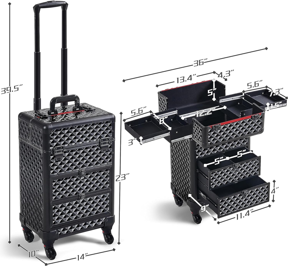 Store New Arrivals Add to Favorite View Feedback Contact Rolling Makeup Train Case with Drawers Professional Nail Tech Travel Case Cosmetics Storage Organizer Beauty/Nail Art/Hair Styling Travelling Cart Trunk Black Description Item model number YTih010007001 Department Unisex Adult Product Dimensions 14 x 10 x 23 inches; 16.84 Pounds Country of Origin Cambodia Product Description Rolling Makeup Train Case with Drawers Nail Tech Travel Case Cosmetics Storage Organizer Beauty/Nail Art/Hair Styling Travelling Cart Trunk Yaheetech durable cosmetic case is made from high-quality ABS and metal, designed with a sturdy aluminum alloy frame that makes a long-lasting lifespan. Constructed with CARB P2-compliant manufactured wood, this makeup trolley is equipped with a waterproof plastic surface and a robust aluminum alloy frame, ensuring excellent strength and durability. This professional makeup case has a 3-part design with exclusive compartments in different sizes and arrangements to keep all your makeup items organized. Additionally, it is designed with a convenient aluminum telescopic pull handle, which can extend up to 100cm and 4 universal wheels for effortless mobility. Makeup Travel Case Hexagonal telescopic rod can be adjusted the length of the rod freely according to users' height. Large Makeup Train Case The handles designed according to ergonomic principles make the lifting more comfortable. Nail Travel Case for Nail Tech Adopt a bold and chic color palette and embossed diamond texture, modern & luxury. Rolling Makeup Case Organizer Lockable latches keep your items safe and secure. Barber Case Makeup Suitcase Metal hinge with triangular support structures provides strong support to the cage. Nail Tech Travel Case Durable aluminum edges and metal corners for dual sturdiness. Professional Makeup Travel Case Aluminum pull rod provides smooth operation and corrosion resistance as well. The waterproof surface makes this trolley makeup case an excellent protector for your cosmetics when using outdoors. Portable Makeup Storage Equipped with smooth slides, make full use of the bottom space. Cosmetology Case on Wheels Equipped with four 360° swivel wheels for smooth and silent moving. ABOUT US We offer the best prices around on high quality products. Our E-store includes media such as books, movies, music and games while offering electronics, toys, sporting apparel, clothing, tools, general home, garden items and more. SHIPPING We are always working hard to ensure your package arrives as soon as possible. Please understand that some factors like weather, high postal traffic, and the performance of shipping companies are outside of our control. We offer free shipping to the lower 48 states and ship within 2 business days of payment, usually sooner. We do not accept P.O. Boxes. Please provide a physical address. For shipping outside of the continental USA, we only use eBay's Global Shipping Program.The item is shipped to KY and then sent to the rest of the world. International customers are responsible for all duties and taxes. Continue to check out in order to calculate costs for shipping the item to your country. Messages regarding eBay's Global Shipping Program MUST be directed at eBay EXCLUSIVELY. RETURNS We offer a 30-Day Return Policy on items which you are not completely satisfied with. You have the option for a full-refund or an exchange of the item. No returns are available on items shipped outside of the USA. PAYMENT We accept PayPal. CONTACT US This page content is yet to come Please ad us to your favorite seller and visit again later Thank You CUSTOMER SATISFACTION We try our very best to make sure every customer is completely satisfied. If there's a problem, message us! We're happy to help. WE ACCEPT Copyright © 2021 AutoDS. | All Rights Reserved