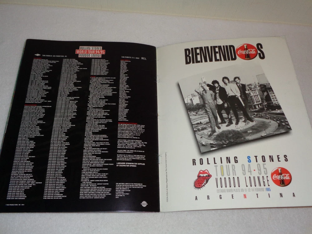 Rolling Stones Voodoo Lounge World Tour 1994-95 Original Concert Program Measures 9 5/8” x 12. 28 Pages. Item has creasing, scuffs, turned corners, and edge tearing from handling and storage. There are also marks to the covers. Please see photos for more information on condition and ask any questions you may have. This would be a nice addition to any collection.
