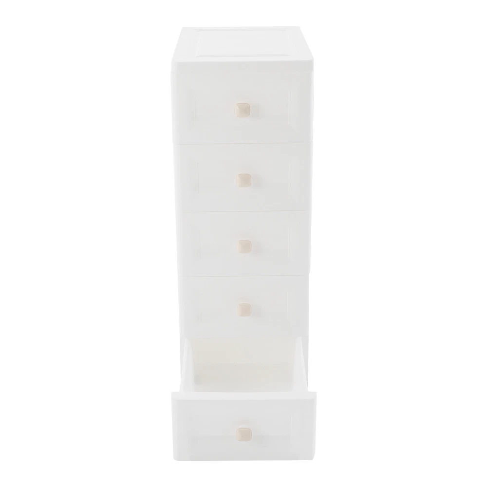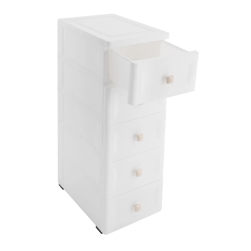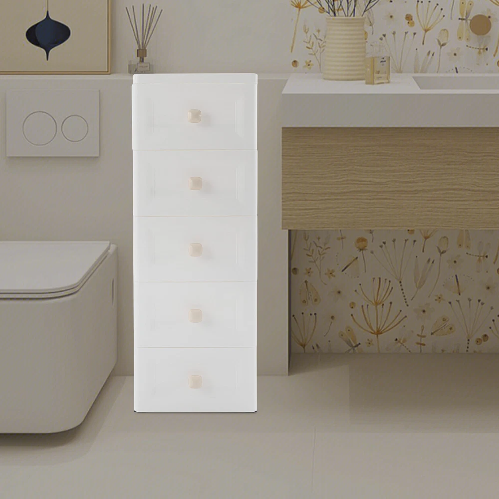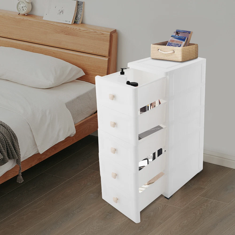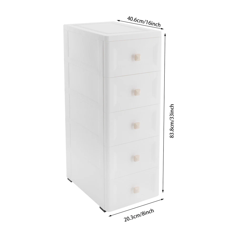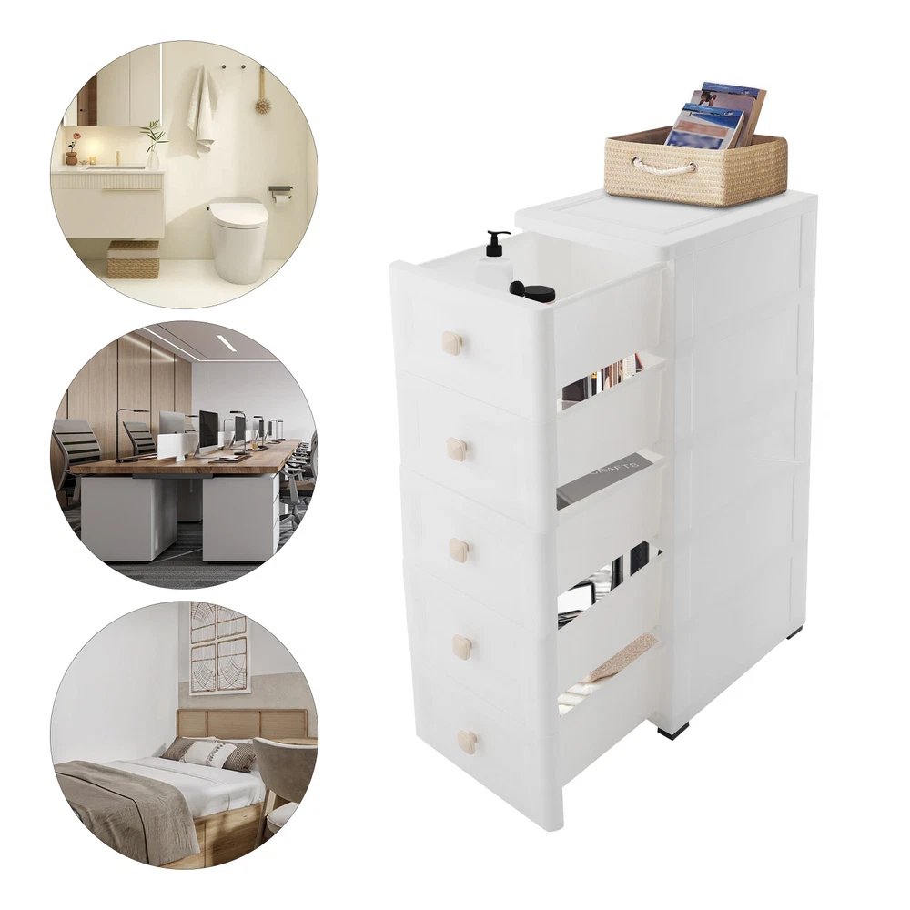 Rolling Storage Drawer Cart Bathroom Storage Cabinet Drawer Storage Organizer US Description This 5-tier drawer storage organizer is built with premium materials for high sturdiness and durability. With its compact and smart design, it can utilize the narrow space in your home to keep kitchen spices, bathroom supplies, books, and documents, as well as living room sundries stored in an orderly manner. In addition, its minimalist modern style makes it not only practical but also aesthetically pleasing, making your home more organized and enhancing the overall beauty of your decor. Key Features Build to Last: The PP with frosted process is non-toxic , odorless , impact-resistant , and abrasion-resistant , which can protect the product from corrosion and enables the product to have a long service life and a good appearance. High Load Bearing: The thick panels and sturdy wheels provide the product with a sturdy construction to hold a weight of 22 lbs of each tier so that you can use it with more confidence. Excellent Organizer: It comes with five drawers, providing you with enough space to categorize and store your kitchenware, hygiene products, school books, tools, and other items, making your storage more organized and easier to find. In addition, the open platform at the top allows you to place potted plants, table lamps, photo frames and other decorative items, thus adding more attractive and small ingenuity to your room. Easy to Move: With four wheels, you can easily move the product and its inner items from one place to another, giving you great convenience on movement and floor-sweeping. Space Saving: The slim body(8-inch width) makes it easy to be placed in various narrow spaces, making full use of your home space. Clean with Ease: With a smooth surface and a simple structure, you can wipe it clean easily with a damp cloth. Ideal Gift: The modern style appearance and practical function make it an ideal housewarming gift for your friends, families, and colleagues. Buy with Confidence: We stand behind all our guests and look forward to assisting you with your purchase. It is our pleasure to answer your confusion and questions. The end of the story between us is not "we sell and you buy". Details Convenient Handles: The drawer handles allow you to easily pull the drawer out and access your items. Rounded Corners: They are smooth to the touch and can prevent your hands from scratching. Application The product is suitable for use in various places such as baby rooms, corridors, offices, kitchens, living rooms, bedrooms, study rooms, bathrooms, apartments, school dormitories, hotels, and so on. Specifications Color: White Material: PP Handle Shape: Square Process: Frosted Process Number of Tiers: 5 Mount Type: Free Standing Assembly Required: Yes Load Bearing Capacity(Each Tier): 10kg/22lbs Product Overall Size: 20.32*40.64*83.82cm/8*16*33in Package Size: 41*40*27cm/16.14*15.75*10.63in Gross Weight: 4.2kg/9.26lbs Net Weight: 4kg/8.82lbs Package Included 1* Drawer Storage Organizer 1* English Manual Other Needed Accessories Notes Please check the size carefully before ordering. Please use the product within its weight capacity to avoid damage. Please allow the slight color difference caused by the shooting light and 1-3cm error due to manual measurement, and make sure you do not mind before you order. Payment Delivery details Terms of sales About us Contact us Payment We accept ebay payment 。 Fees such as import duties, taxes are not included in the item price or shipping costs. These charges are the buyer's responsibility. Delivery details Shipping: 2-9 working days to: USA Terms of sales We maintain high standards of excellence and strive for hundred percent customer satisfaction. Feedback is very important to us. We hope that you contact us immediately before you give neutral or negative feedback, so that we can address your concerns. It is impossible to address issues if we do not know about them! About us Your satis faction is our ultimate goal. We work hard to earn your trust and future business. Our certified technicians have tested each item before shipping. The unit comes with 1 year limited warranty on all manufacturing defects. a) If you receive a defective item, you may return it or ask for a discount. Please contact us within 14 days after you receive the package. b) What you returned must be intact and in its original packaging as re? u. Customer is responsible for shipping costs of the returned item. c) We will cover the cost of shipping back t with the shipping rate indicated in the registration page. We will send you a new unit or refund the full payment you paid. Thank you. Contact us Business Hour Business Hour: Monday To Friday: 8:30 AM to 5:00 PM (Beijing China time) Due to time zones, our reply to your questions may not be immediately. But within above working time, we will reply your email within 24 hours. If it's non-workdays, please kindly be patient and wait till Monday. Please contact us with ebay message. Please feel free to contact us if you have any questions. Monday To Friday: 8:30 AM to 5:00 PM (Beijing China time) Due to time zones, our reply to your questions may not be immediately. But within above working time, we will reply your email within 24 hours. If it's non-workdays, please kindly be patient and wait till Monday. Please contact us with ebay message. Please feel free to contact us if you have any questions. On Feb 9, 2025 at 19:55:47 PST, seller added the following information: