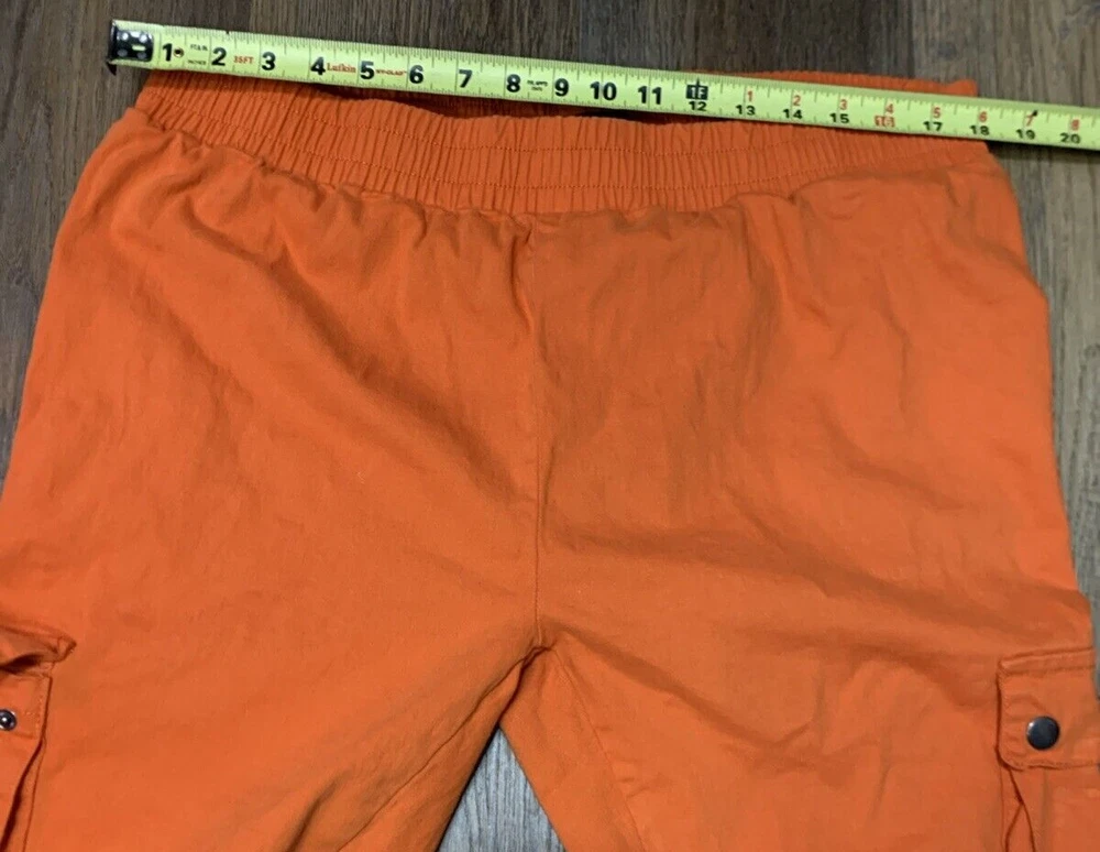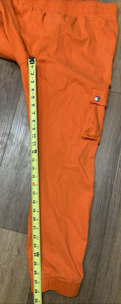 Upgrade your streetwear game with these Roma Studio Premium Collection cargo joggers. The colorful orange design, featuring a solid pattern and tapered leg style, is perfect for any hip hop-inspired outfit. The pull-on closure and elastic waist make them comfortable for casual wear, parties, or travel. Made from a blend of spandex, ramie, and cotton, these pants are easy to care for and machine washable. The mid-rise fit and cargo style add to the overall look. These pants come in a 3XL size with a waist size of 36 inches and an inseam of 28 inches. Get ready to turn heads with these stylish and comfortable pants.