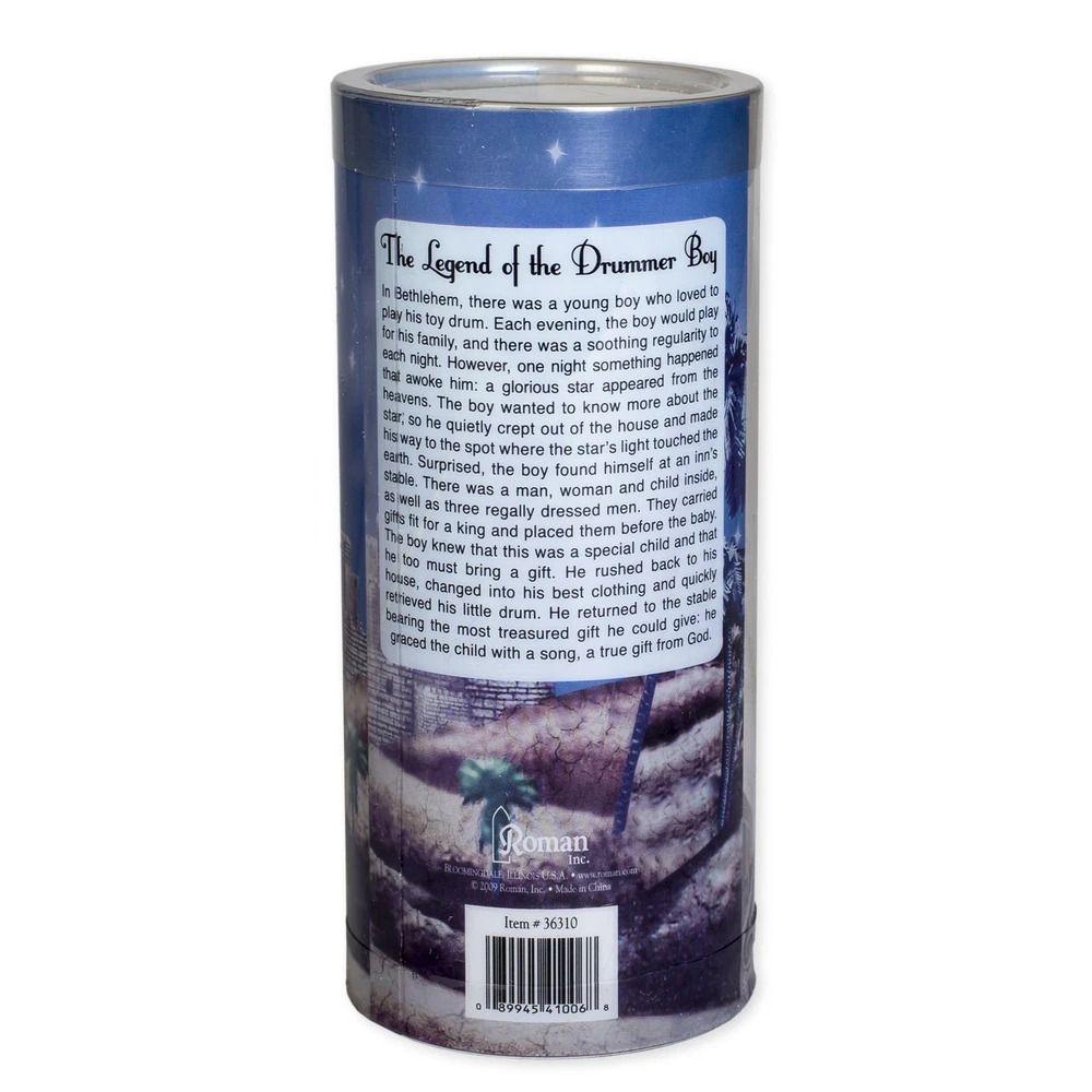 Roman The Little Drummer Boy Christmas Ornament Decoration 36310 New PRODUCT DESCRIPTION Drummer Boy Ornament Made from resin and stone mix Approximately 5 inches tall (13 cm) Packaged in gift box In Bethlehem, there was a young boy who loved to play his toy drum. Each evening the boy would play for his family and there was a soothing regularity to each night. However, one night something happened that awoke him: a glorious star appeared from the heavens... © Copyright . All rights reserved.
