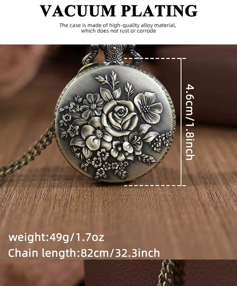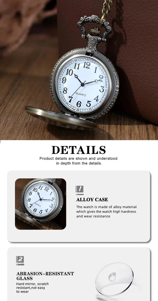 Experience Timeless Elegance with Our Exquisite Hollow Case Quartz Pocket Watch Featuring Roman Numerals A perfect blend of craftsmanship and style, this pocket watch is designed for those who value classic beauty and functionality. 🇬🇧 UK Tracking Available ✅ Quality Assured 📦 30 Days Free Return Elevate your style with this stunning Roman numerals quartz pocket watch, a perfect accessory that seamlessly blends traditional charm with modern functionality. Designed for both men and women, this pocket watch is not just a timekeeping device, but a statement piece that reflects your unique personality. The intricate hollow case design allows for a glimpse into the watch's inner workings, showcasing the craftsmanship and attention to detail that goes into every piece. With its elegant Roman numerals adorning the dial, this watch offers a classic yet contemporary look that will never go out of style. Whether you're dressing up for a special occasion or looking to add a touch of sophistication to your everyday attire, this pocket watch is the perfect choice. Experience the allure of timeless elegance and make a lasting impression with this exquisite timepiece. ✨ Key Features Elegant Roman Numerals: The classic Roman numeral design not only enhances readability but also adds a touch of sophistication to your look. Hollow Case Design: The unique hollow case allows you to appreciate the intricate mechanics of the watch, making it a conversation starter. Quartz Movement: Powered by reliable quartz technology, this pocket watch ensures accurate timekeeping, allowing you to stay punctual in style. Unisex Appeal: Designed for both men and women, this versatile pocket watch is perfect for anyone who appreciates timeless elegance. Durable Material: Crafted from high-quality materials, this pocket watch is built to withstand daily wear while maintaining its stunning appearance. Perfect Gift Option: This exquisite timepiece makes for a thoughtful gift for birthdays, anniversaries, or any special occasion. 📋 Detailed Overview This Roman numerals quartz pocket watch is a perfect blend of classic design and modern functionality. The watch features a beautifully crafted hollow case that not only enhances its aesthetic appeal but also provides a view of its intricate inner workings. The Roman numerals elegantly displayed on the dial add a timeless touch, ensuring you can tell the time at a glance while making a bold fashion statement. The quartz movement guarantees precision and reliability, making this watch a practical choice for daily wear or special occasions. Designed with versatility in mind, this pocket watch is suitable for both men and women, allowing anyone to enjoy its luxurious charm. The durable construction ensures that it can withstand the rigors of everyday use while maintaining its stunning appearance. Whether you’re dressing up for a formal event or adding a touch of sophistication to your casual outfit, this pocket watch is the ideal accessory. It also makes a thoughtful gift for loved ones, symbolizing timelessness and elegance. The attention to detail in the design of this pocket watch is evident, from the intricate carvings on the case to the smooth finish that enhances its overall elegance. It's not just a timepiece; it's a piece of art that reflects the wearer’s taste and appreciation for fine craftsmanship. With this Roman numerals quartz pocket watch, you are not just keeping track of time; you are making a statement that speaks to your style and sophistication. 📸 Product Gallery Elegant Roman Numerals Pocket Watch showcasing its stunning design. Detailed view of the hollow case design, revealing the intricate mechanics. Quartz movement ensures precise timekeeping for everyday use. A stylish accessory suitable for both men and women. Crafted from high-quality materials for durability and longevity. Versatile design makes it a perfect fit for any occasion. An excellent gift choice for special occasions. A classic design that stands the test of time. 🔧 Technical Specifications & Features Brand Name - Unbranded This pocket watch is designed without a specific brand label, allowing for a unique appeal to those who prefer a distinct style. The unbranded nature of this quartz watch means you can enjoy a high-quality timepiece without the premium price tag associated with well-known brands. Why This Matters: Choosing an unbranded watch allows for a more personal connection to your style, emphasizing individuality over conformity. Dial Diameter - 4.6 cm The 4.6 cm dial diameter offers a perfect balance between visibility and elegance. This size ensures that the time is easily readable at a glance, making it suitable for both men and women. The round shape complements the hollow case design, enhancing the watch's aesthetic appeal. Why This Matters: A larger dial size not only enhances readability but also adds to the overall sophistication of the watch, making it a versatile accessory for various occasions. Display Type - Arabic Numeral Markers Featuring Arabic numeral markers, this pocket watch ensures that time is displayed clearly and stylishly. The use of Arabic numerals adds a modern touch to the traditional fob watch design, appealing to contemporary tastes while maintaining classic charm. Why This Matters: Clear numeral markers enhance functionality, making it easier for users to tell the time at a glance, which is particularly beneficial for those who are always on the go. Movement - Quartz This pocket watch utilizes a reliable quartz movement, ensuring precise timekeeping with minimal maintenance. Quartz watches are known for their accuracy and longevity, making them a practical choice for everyday wear. Why This Matters: Quartz movement provides the user with peace of mind regarding time accuracy, allowing for a stress-free experience when managing daily schedules. Case Shape - Round The round case shape is a timeless design that fits comfortably in hand or 