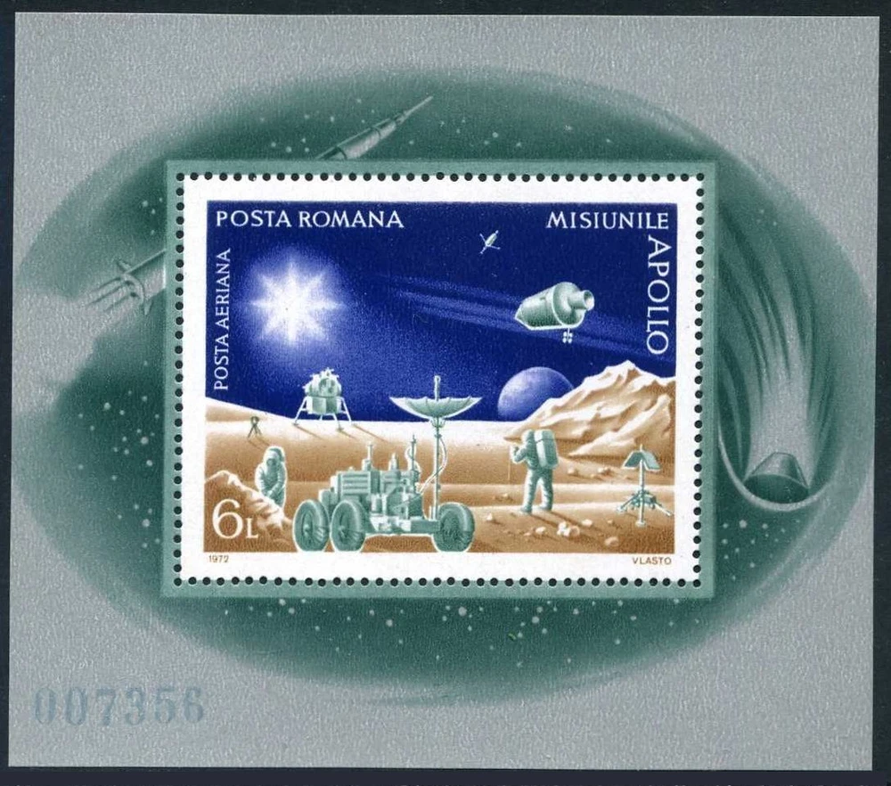 Romania 2387-2395, C192, MNH . Michel 3069-3077, 3078 Bl.102 . Nightlights of US Apollo space program, 1972. $0.05 shipping for each additional eligible item you buy . For domestic purchases up to $60.00 first class mail will be used; purchases above $60.00 require mail with tracking number or insured mail (buyer pays the mail fee). For international purchases up to $60.00 first class international airmail will be used; purchases over $60.00 require mail with tracking number, buyer pays the shipping (registered mail, buyer pays the $22.00 or $24.00 for oversize item). Warning for the buyers from Eastern European countries, Russia, China, Middle East, South Asia, Latin America, Africa exclude RSA, and the buyers with eBay ID less 100: the purchases over $30.00 require expedited mail.