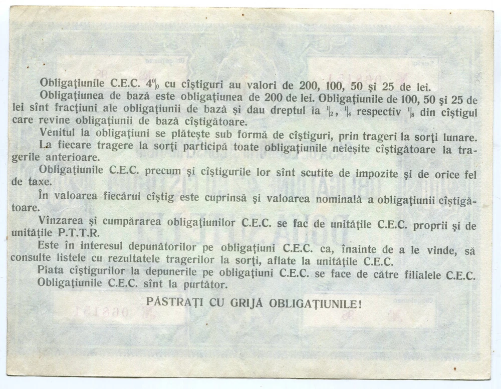 Romania RSR 1970's Savings Bank CEC 200 Lei 4% Bond,communist era,XF condition,very good condition,please look carefully the scan to observe any imperfections!!! Items will be send only Registered,5$ for Registered world wide;combined shipment! Please check my other auctions for more and interesting items in my gallery "NAPOCA STORE" Authenticity guaranteed,if you have doubts contact the seller before you bid!For payment please see the Seller's payment instruction.Thank you for looking and happy bidding !