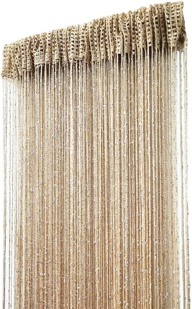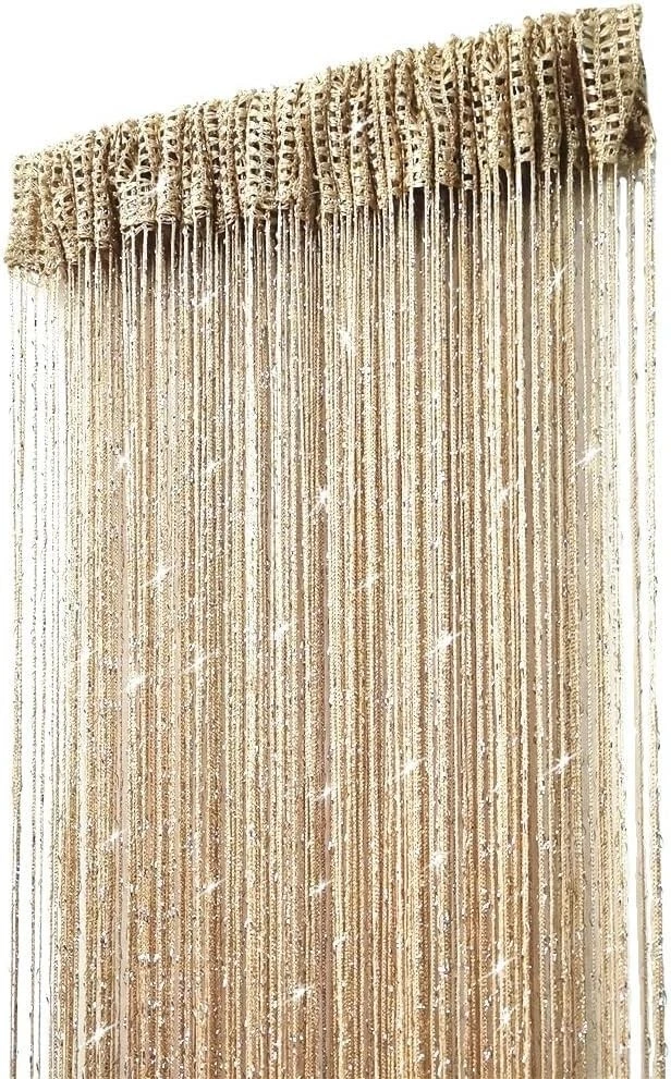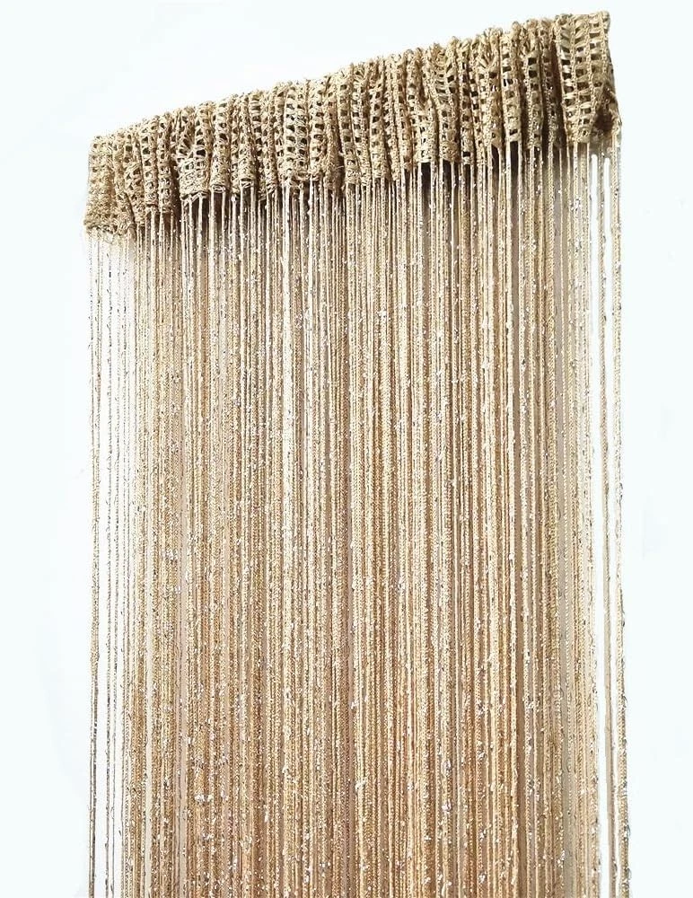 Product Dimensions: 78.7"l X 39.3"w Transparency: Blackout Additional Features: Washable Specific Uses For Product: Decorative Mounting: Wall Mounted Pattern: Striped Personalize: No Item Height: Decorative String Curtain Type: String Curtain Adjustability: None Occasion Type: Wedding Item Dimensions L X W: 78.7"l X 39.3"w Room: Living Room Item Weight: Light Curtain Form: String Curtain Features: Indoors, Decorative, String Curtain, Room Divider, Tassel Screen, Fringe, Easy Hanging, Simple Design UPC: Does Not Apply Material: Polyester Unit Count: 1.0 Count Department: Adults Number Of Items: 1 Theme: Wedding Model: Decorative String Curtain Size: 100 x 200 cm Opacity: Blackout Color: Champagne Seasons: All Season Closure Type: Rod Pocket Compatible Window Type: Any Window Style Name: Modern Package Weight: 0.23 Kilograms Curtain Heading: Rod Pocket Material Type: String Manufacturer: Decorative String Curtain Recommended Uses For Product: Indoor Top-style: Rod Water Resistance Level: Water Resistant Product Care Instructions: Hand Wash Only Care Instructions: Hand Wash Only Brand: Unbranded gtin13: Does Not Apply Style: Modern Lining Description: Unlined Curtain Hanging Method: Rod Pocket