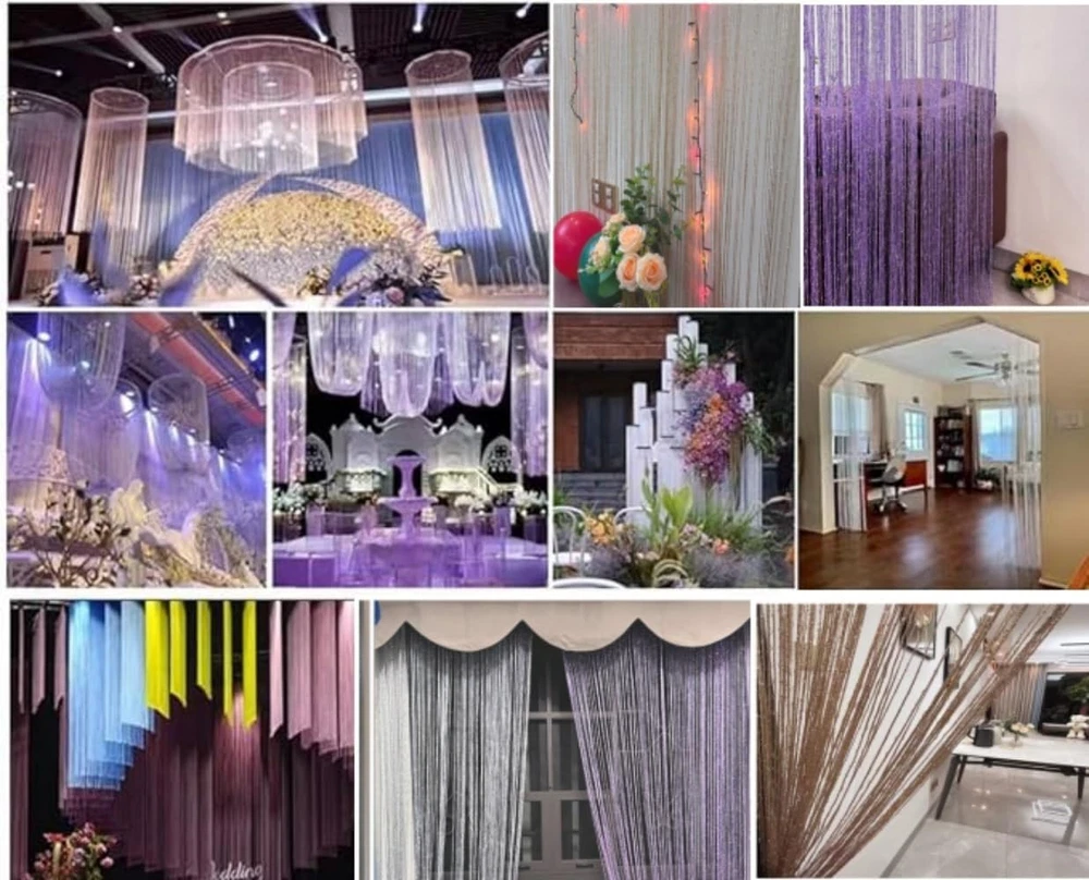 Romantic Champagne String Curtain for Weddings and Indoor Decor