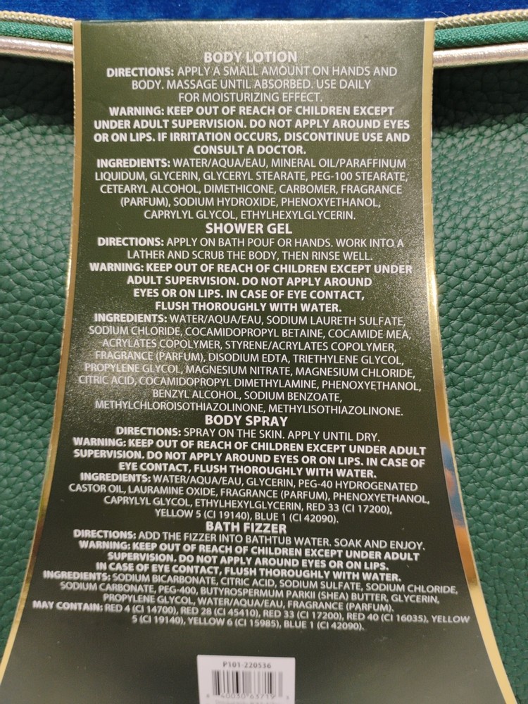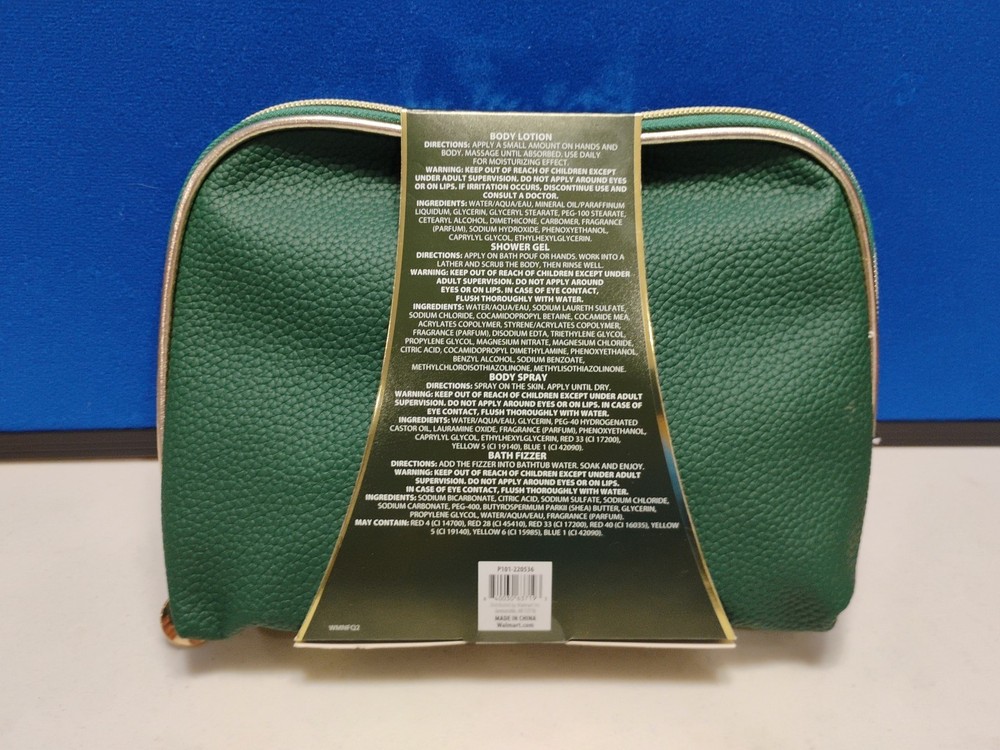 Romantic Florals Magnolia Scented 5 Piece Bath Set Lotion Shower Gel Body Spray Bath Fizzer in Green Bag.