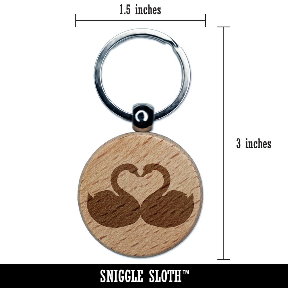 Romantic Kissing Swans Heart Wood Keychain Charm Engraved Gift