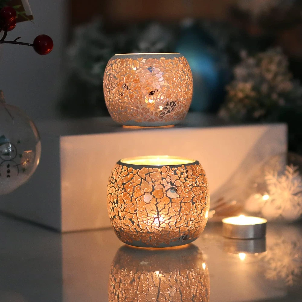 These candle holders are absolutely stunning! The delicate mosaic design and cracked glass give them a romantic, vintage charm. Perfect for weddings, dinners, or adding cozy ambiance to any space. The nude gold color is elegant and versatile—great for Valentine’s, Christmas, or everyday decor. Handmade with care, they’re a beautiful addition to any table setting. Love how they catch the candlelight! Highly recommend for anyone looking to add a touch of warmth and elegance to their home.