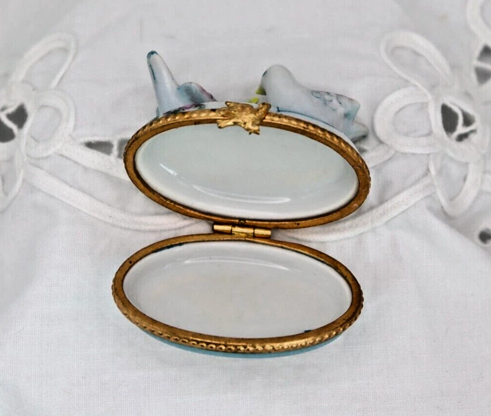 Size: Small Subject: birds Material: Porcelain Style: French Shape: Oval Color: Multicolor Type: Trinket Box Finish: Glossy Seller Notes: “Beautiful Vintage Condition - nearly perfect - latches a little loose” Brand: Limoges