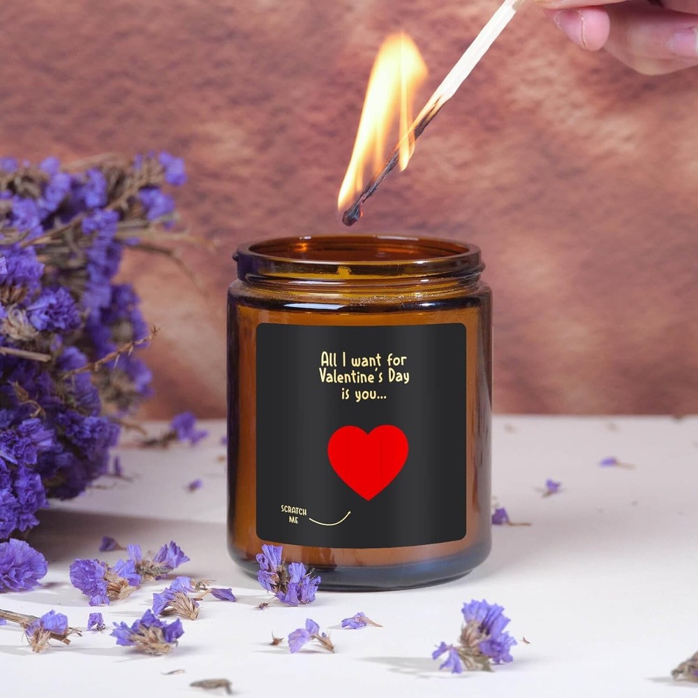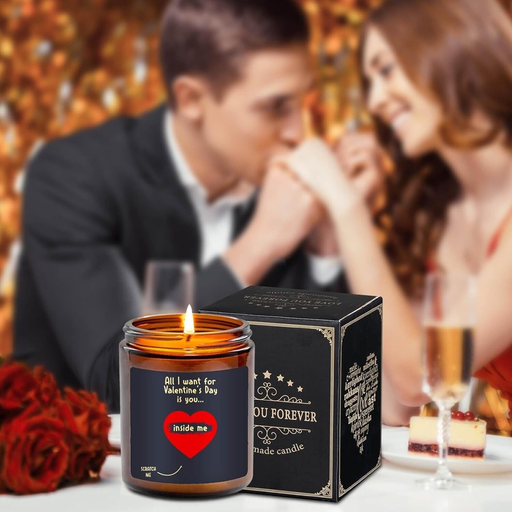 💖Sweet Valentines Day Gifts For Boyfriend: Our 14oz teal jar candle features a playful message that adds a touch of sweetness to your Valentine's Day gift for him. The jar text reads "SCRATCHME All I want for Valentine's Day is you... inside me," creating a fun and unforgettable experience. 💖Hidden Confessions: The jar comes with a special scratching card where your heartfelt message is cleverly hidden. Simply scratch the surface to reveal your innermost feelings, adding an element of surprise and excitement to your gift. 💖Enchanting Fragrance: The English Pear & Freesia scent fills the air with a delightful blend of juicy pears and delicate freesias, creating a romantic atmosphere for your special moments together. 💖The Perfect Valentines Day Gifts For Him: Our candle is the perfect way to express your love and appreciation on Valentine's Day, or any special occasion. It makes a great gift for boys, men, husbands, boyfriends, or dads – anyone who deserves a little extra love. 💖Romantic Valentines Day Gifts For Men: This candle not only provides a charming and romantic ambiance but also offers a personal touch with the hidden confessions. It's a perfect anniversary gift for him that allows you to express your love in a creative and thoughtful way, making it a truly unforgettable gift.